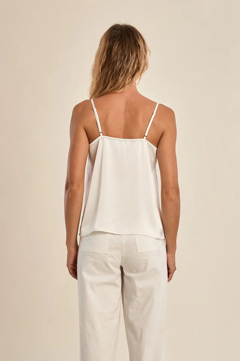 Rendered in crisp green and white stripes, this drapy tank skims the body with ease.
