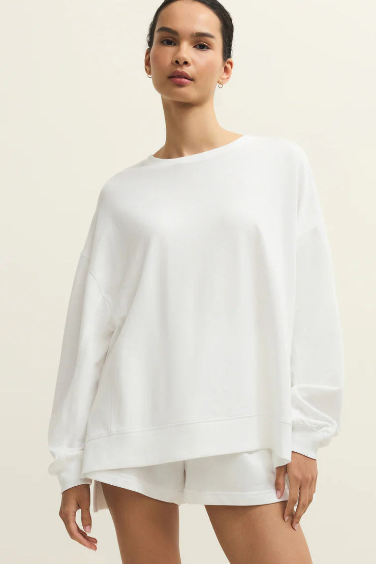 Regular price $106.00Comfy meets cool, with this crewneck sweatshirt made of our signature baby french terry. Its soft and midweight feel makes it a great layer for day or night. Pair with its matching short for the perfect weekend uniform.