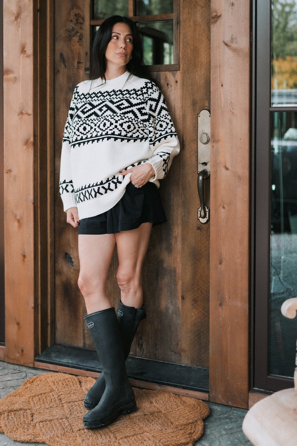 Our Fair Isle Sweater is here in a refined silhouette and new colours. With a striking pattern across the front and back, this knit has a wide oversized body, fits shorter than last year's and drop shoulders. It’s the iconic sweater you’ll reach for again and again.