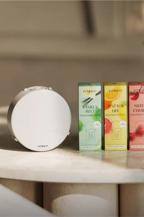 Regular price $49.99The Push Plug-In Wall Diffuser delivers 100% natural scent for up to 500 hours—mess-free, and effortless. With adjustable scent strength and easy-swap cartridges, it’s the simplest way to refresh your space. Scenting up to 200 sq. ft., it seamlessly fits into any space—effortlessly bringing natural fragrance from room to room.
