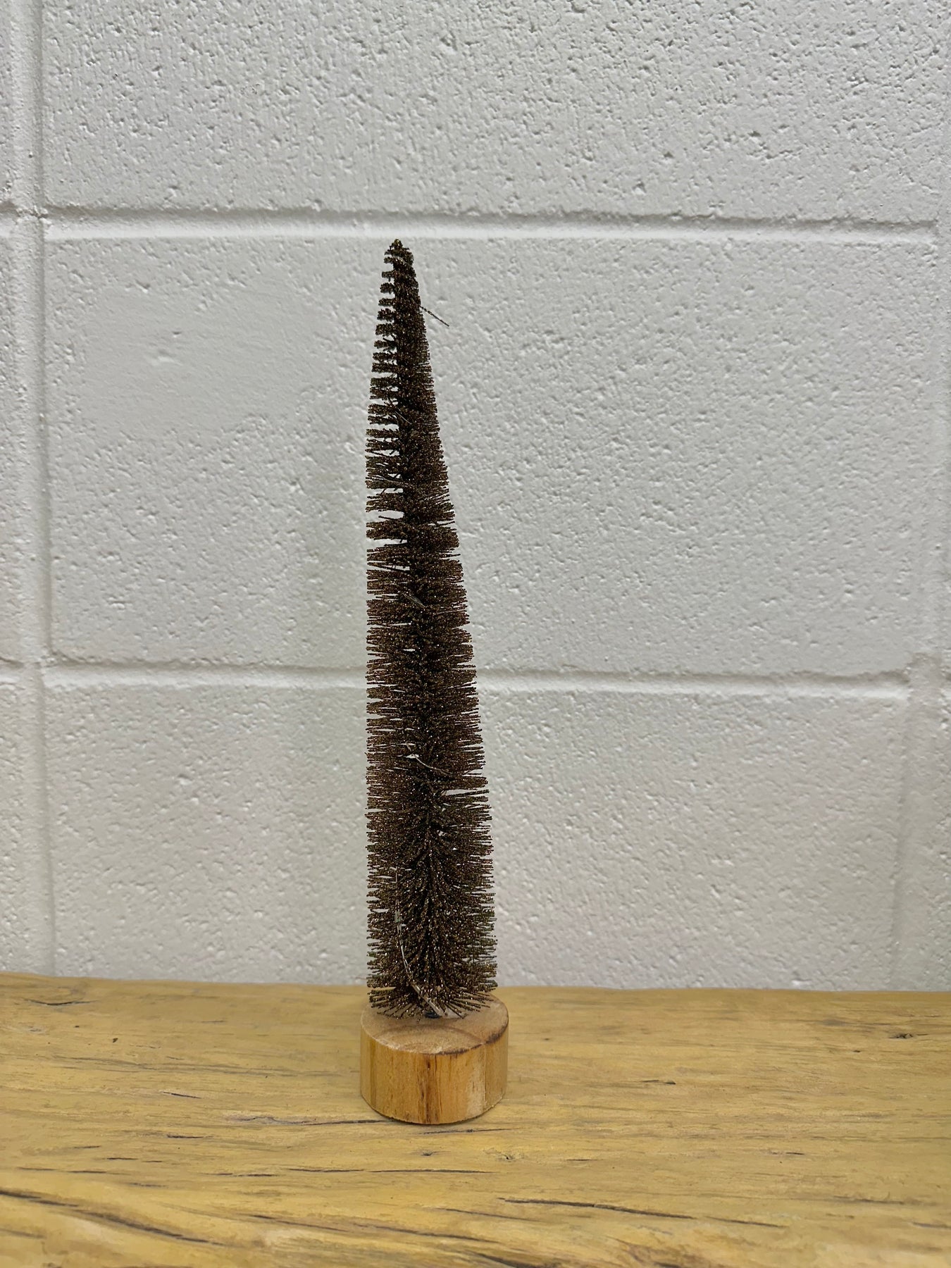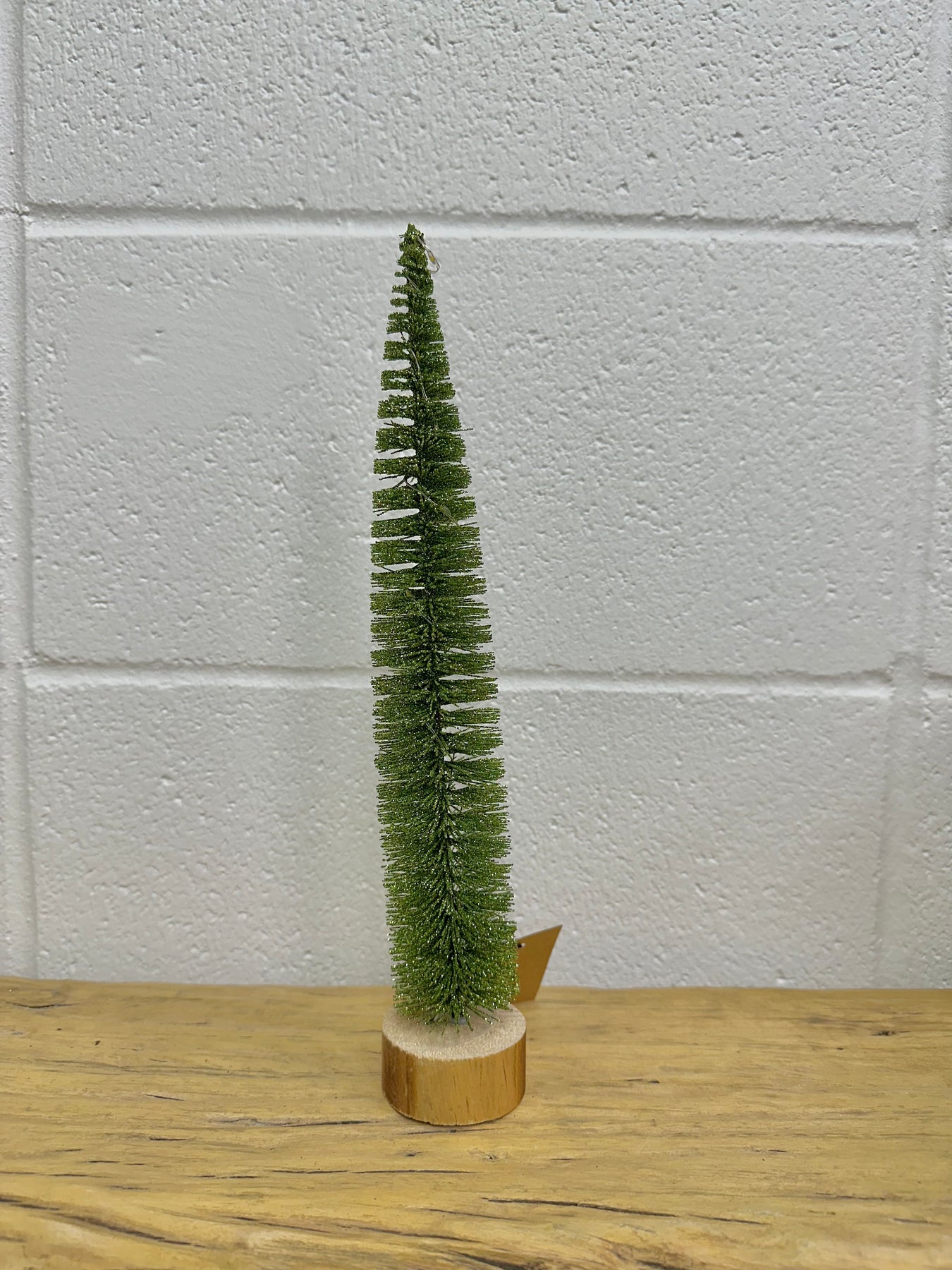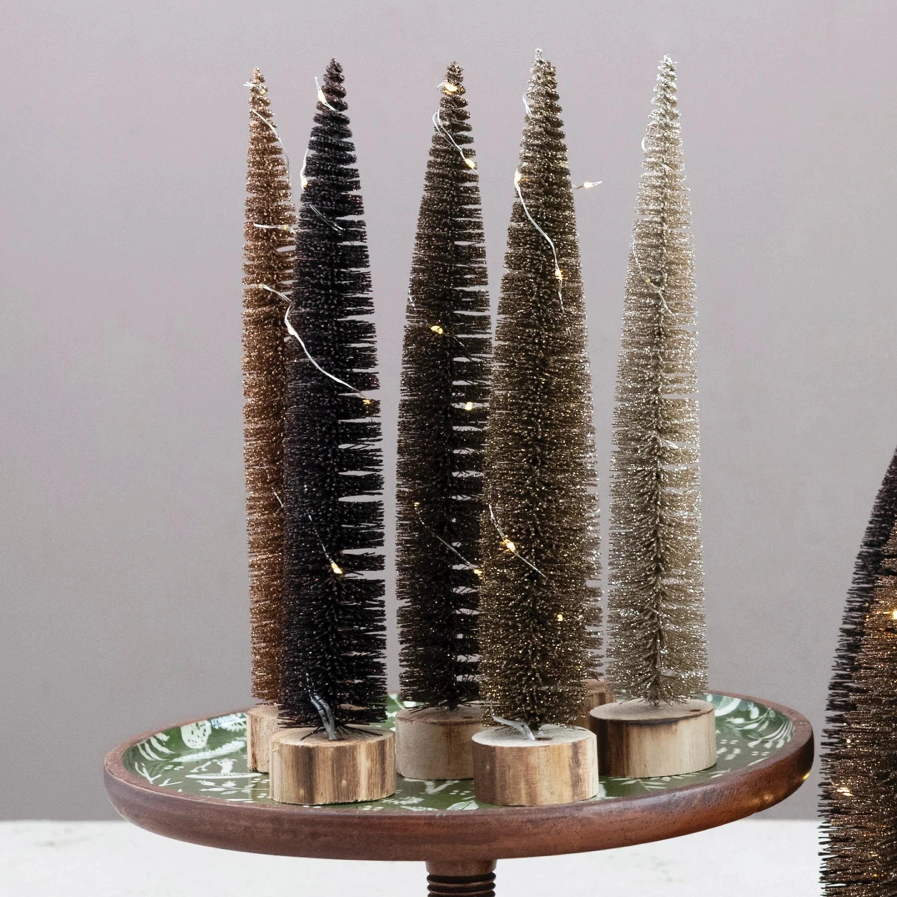 1-3/4" Round x 11-3/4"H Plastic Bottle Brush Tree with 8 LED Lights and Wood Base, 6 Colors (Batteries Included)