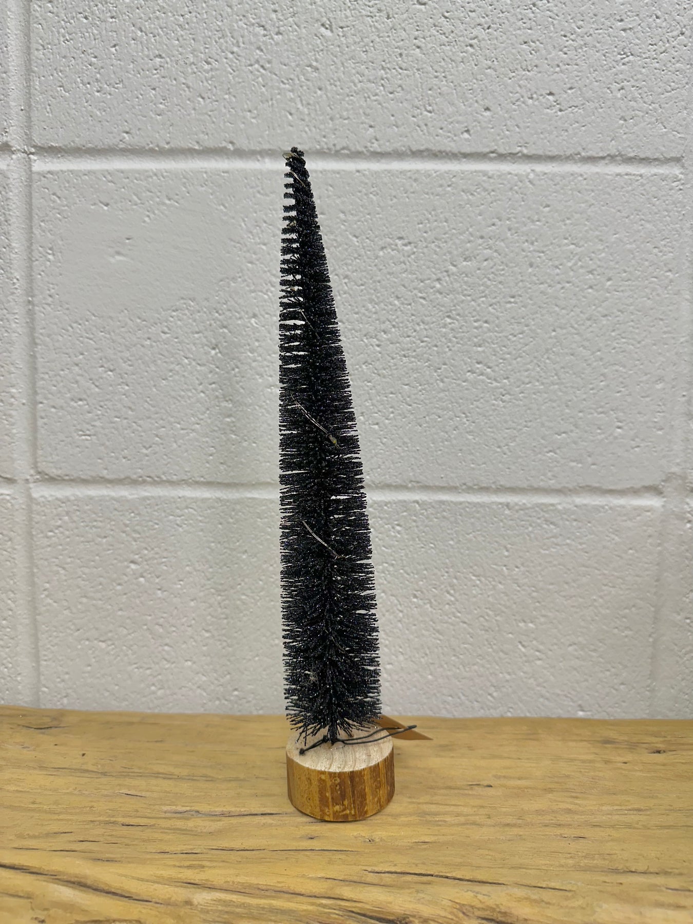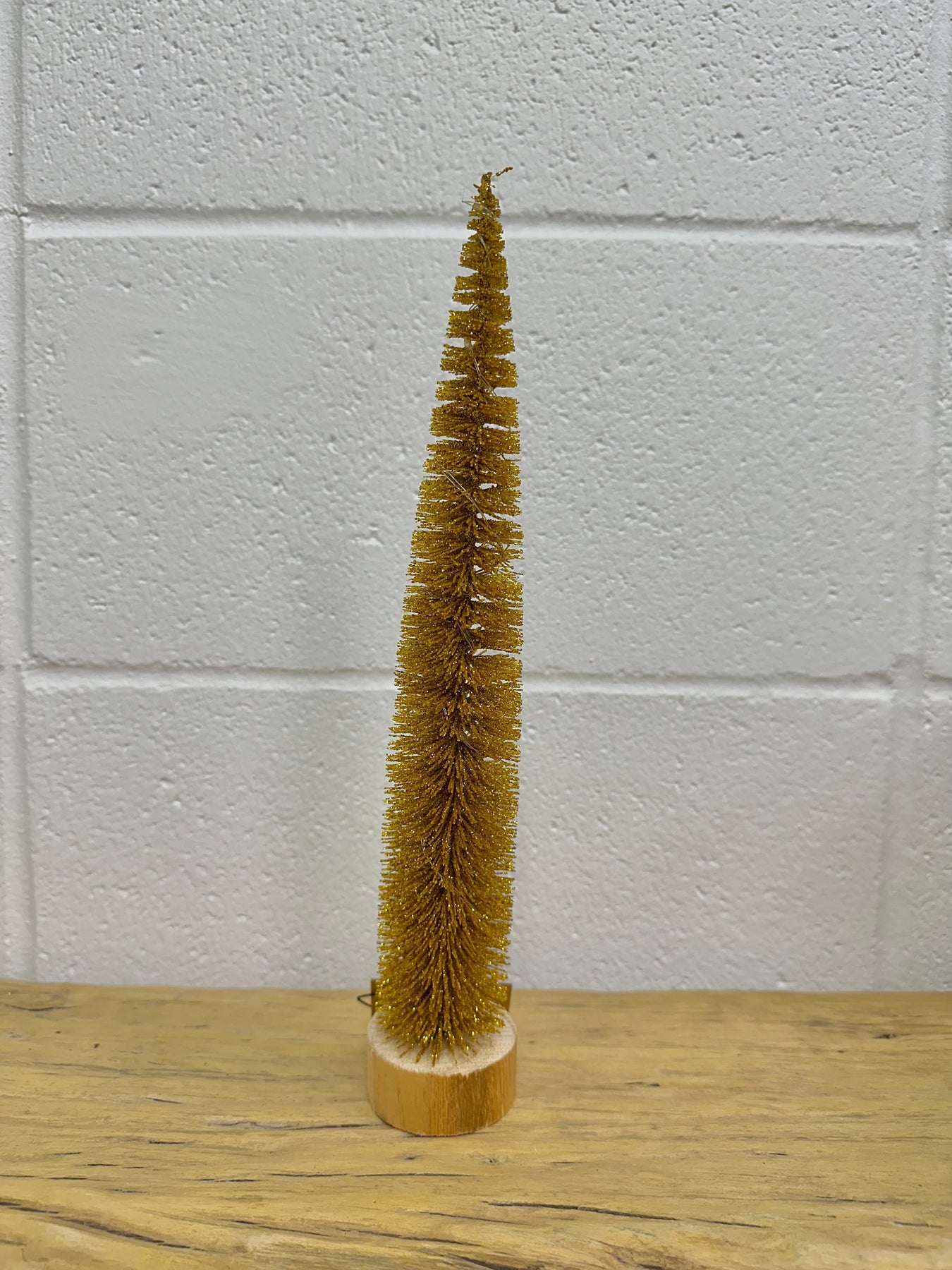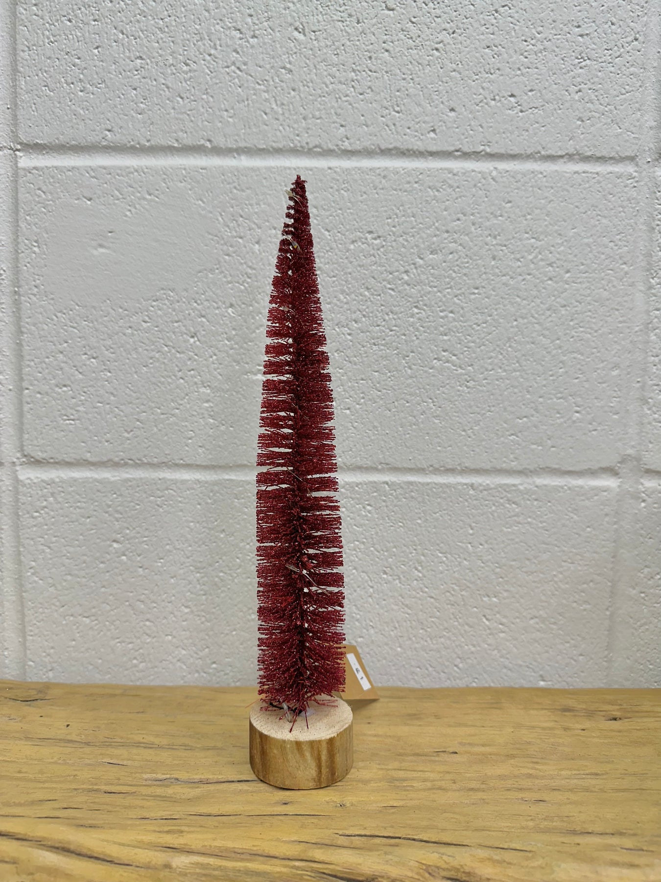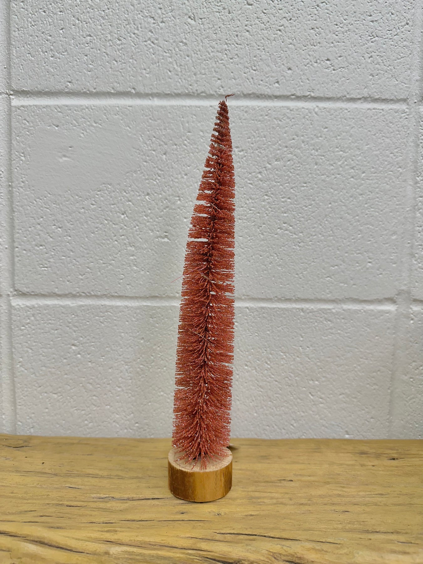 1-3/4" Round x 11-3/4"H Plastic Bottle Brush Tree with 8 LED Lights and Wood Base, 6 Colors (Batteries Included)