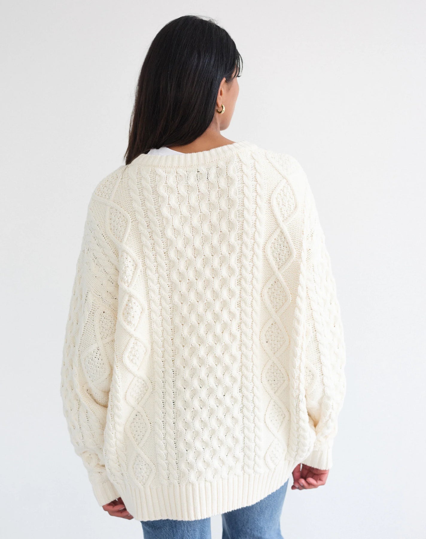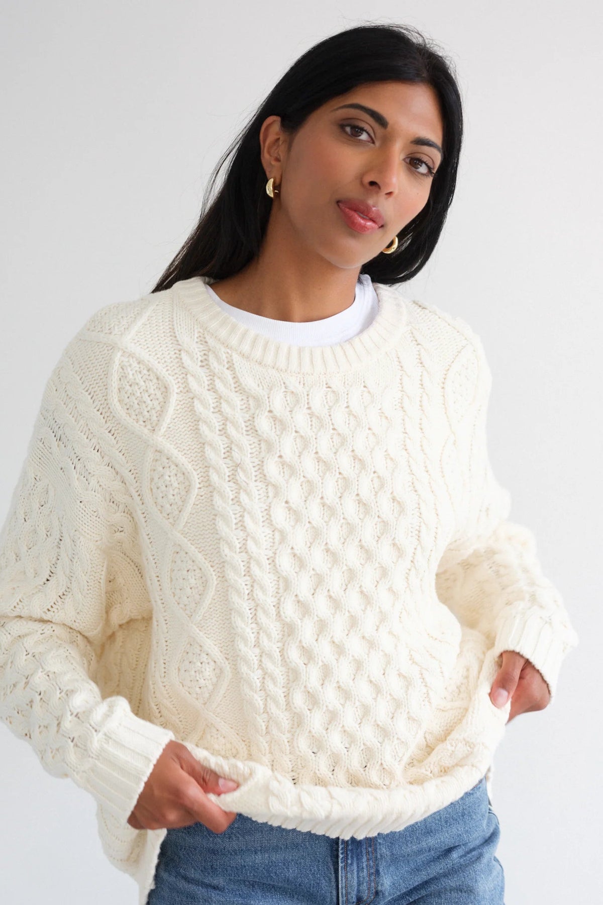 Meet the Irish Cable Oversized Sweater, beautifully knit with timeless cable detailing and a relaxed, oversized fit you’ll want to live in. Available in both cream and navy, the colours are too good to pick just one.