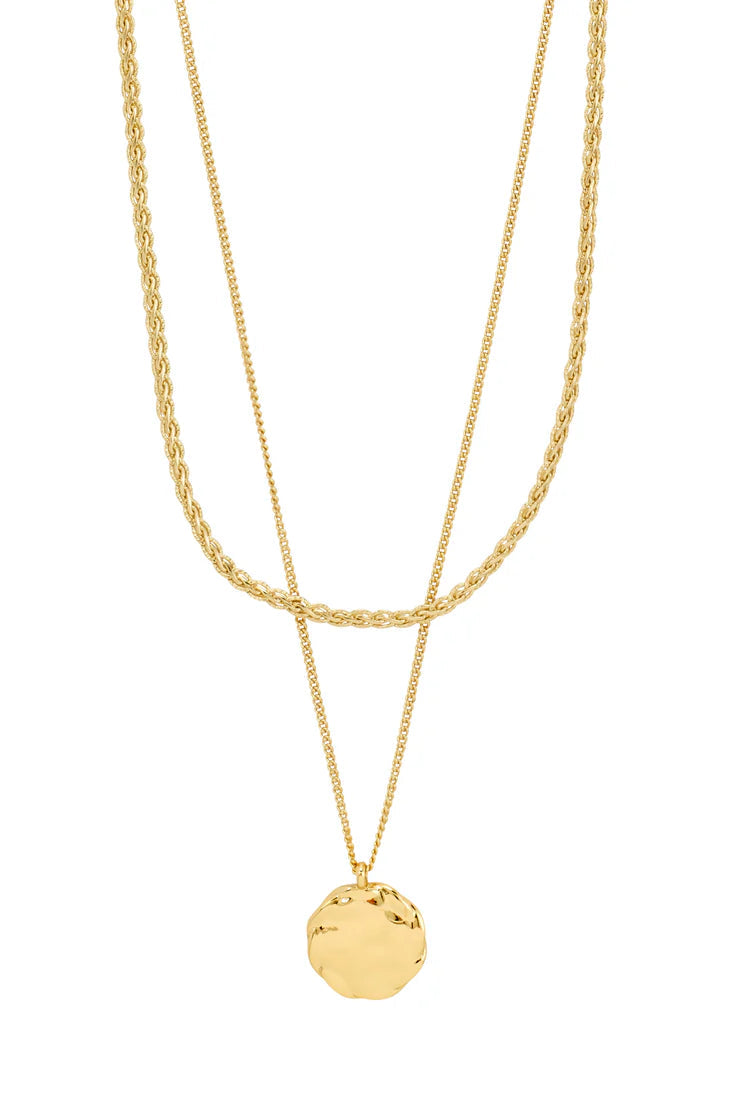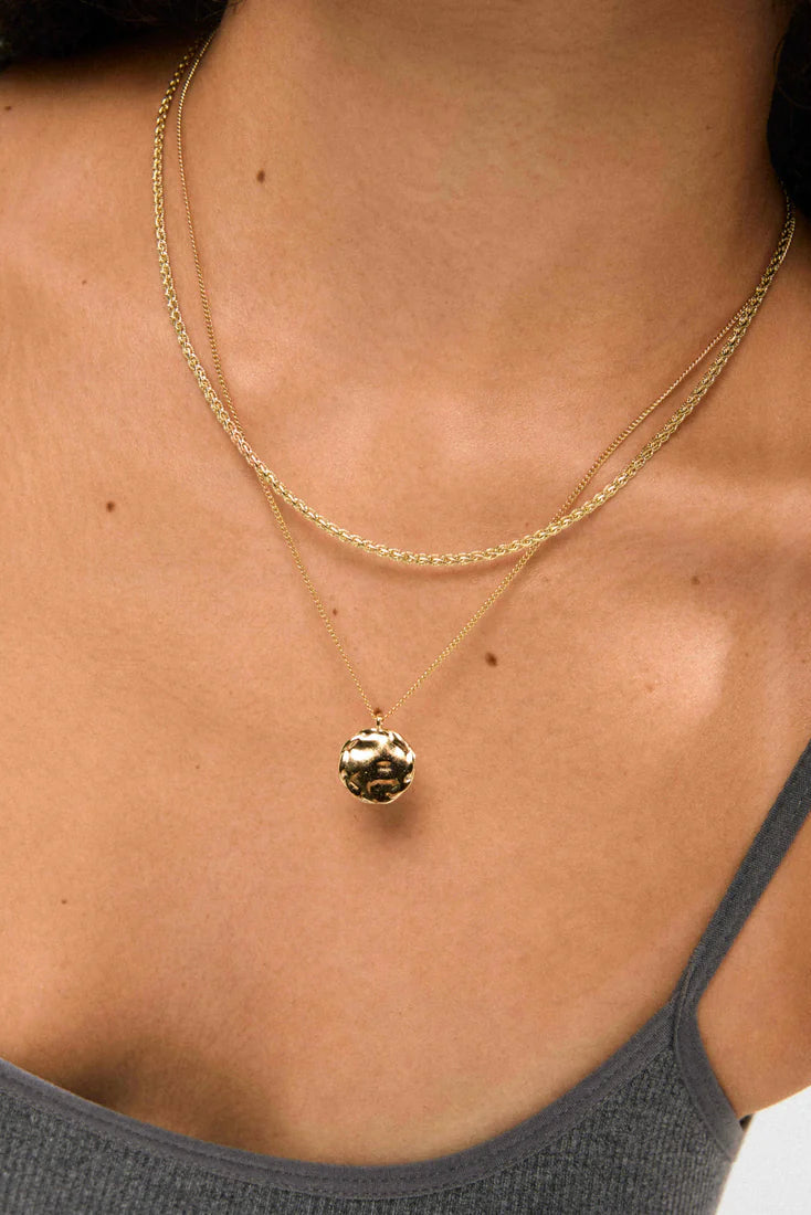 Double the style! Gold-plated or silver-plated set featuring two distinct necklaces – one a braided chain and the other a coin chain with a rustic, shiny pendant. Ideal layering pieces for a stacked style that captures seasonal trends, or wear them individually for a minimalist statement that elevates your everyday outfits. Pair with an oversized blazer or white tee to achieve an effortless look with a laid-back charm using the DECLAN chains. The necklaces measure 38 cm / 42 cm + 15 cm extension chain and are crafted from 99% recycled material – fashion with care for the planet.