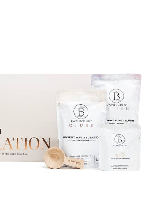 Wrap yourself in the deepest form of hydration with this curated set designed for the ritualist at heart. Featuring three of our most moisturizing bath soaks and our signature Bathorium™ Bamboo Scoop, this collection transforms your bath into a skin-loving sanctuary.