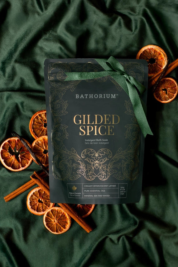 Step into a world of timeless elegance with Gilded Spice—a luxurious bath soak that captures the warmth and opulence of the season. Notes of zesty blood orange and ginger unfold into a heart of cinnamon leaf, cardamom, and star anise, wrapped in soft vanilla, resinous benzoin, and rich patchouli.