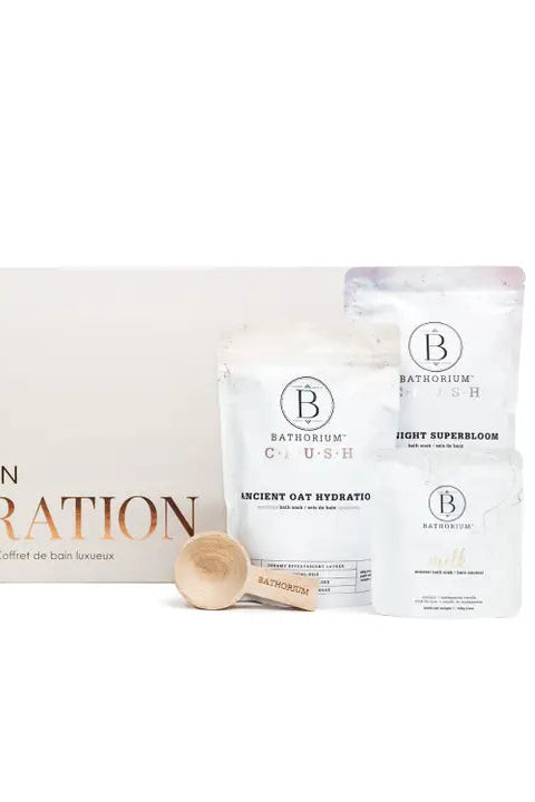 Wrap yourself in the deepest form of hydration with this curated set designed for the ritualist at heart. Featuring three of our most moisturizing bath soaks and our signature Bathorium™ Bamboo Scoop, this collection transforms your bath into a skin-loving sanctuary.