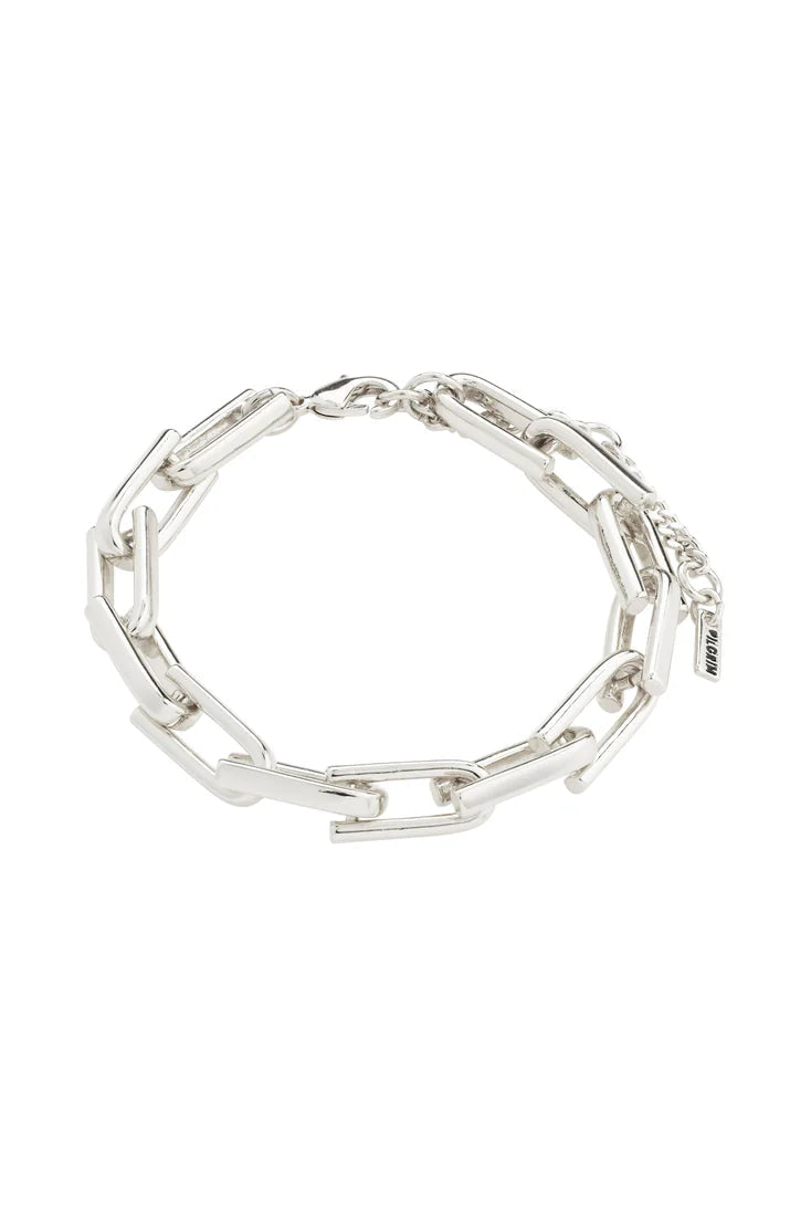 Stay positive and bring out your can-do attitude with the STAY bracelet by Pilgrim. Gold-plated or silver-plated cable chain design bracelet with rectangular open links delivers a perfect balance between urban chic and raw elegance. A piece that reflects your confident style and adds a shiny finish to your everyday looks. Cultivate a personalised layered style by combining the STAY bracelet with multiple chains for a wow effect. The bracelet is made from at least 75% recycled material.