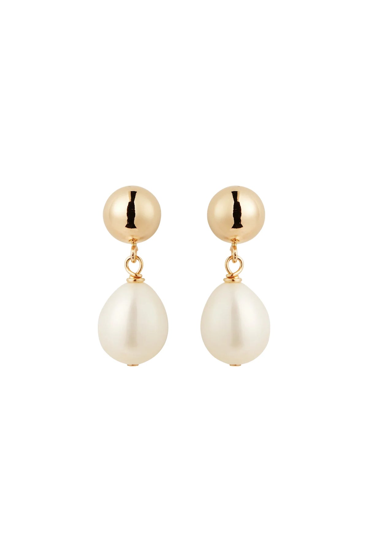 A classic drop earring featuring a sphere stud accented by beautiful, one of a kind, oval Fresh Water Pearls.