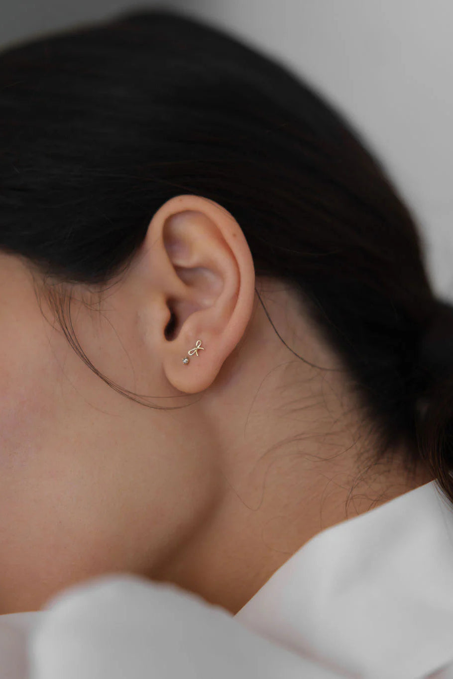 The sweetest and chicest petite bow studs crafted in 14K Gold.