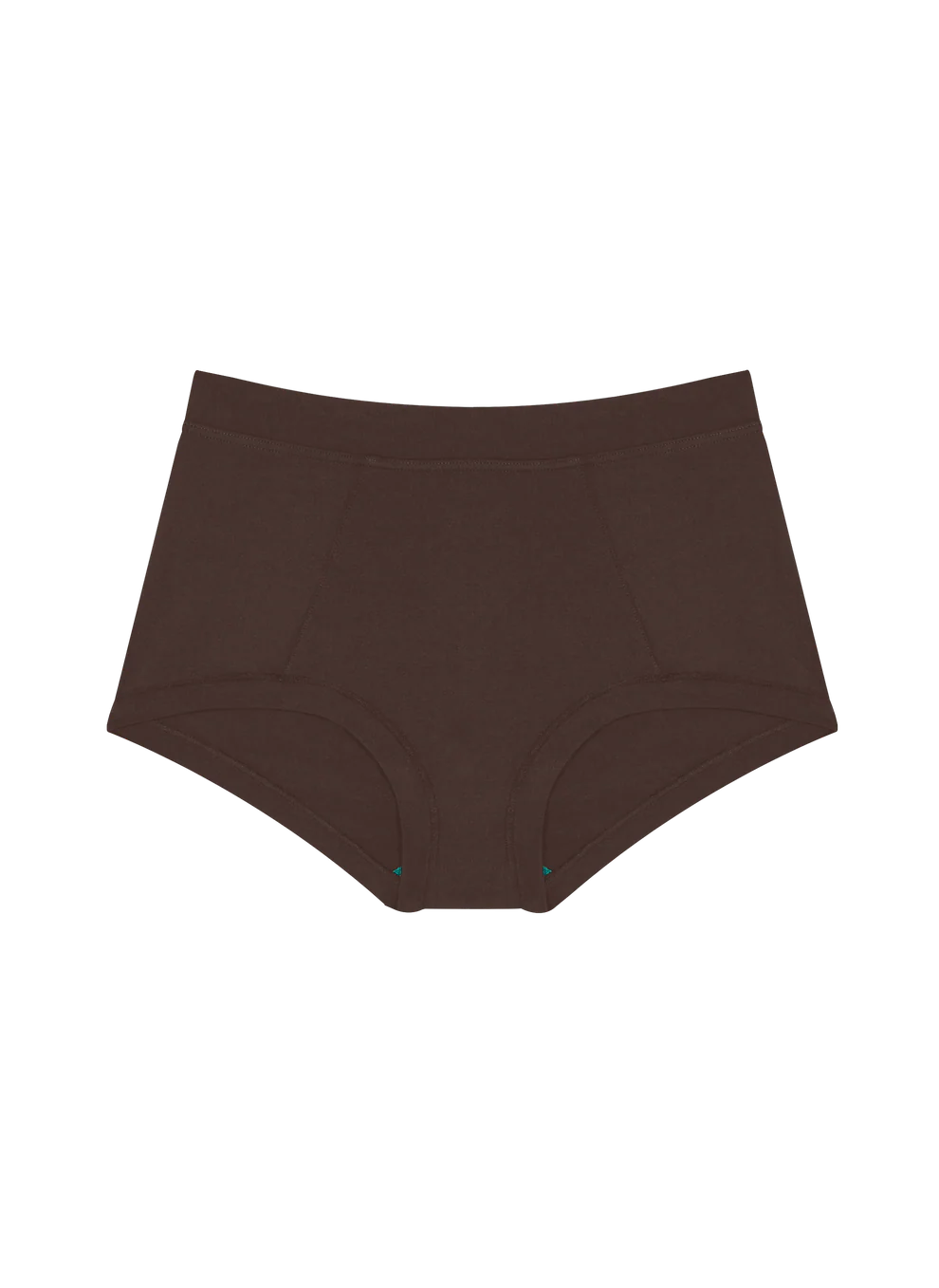 Our Brief delivers next-level comfort whether you’re lounging or on the go. With our highest rise, wide-cuffed waistband, and supportive front panel, this cut feels like a hug and minimizes pressure on the lower abdomen. The modest-cut leg is elastic-free to keep you moving freely—with just a peak of cheek.