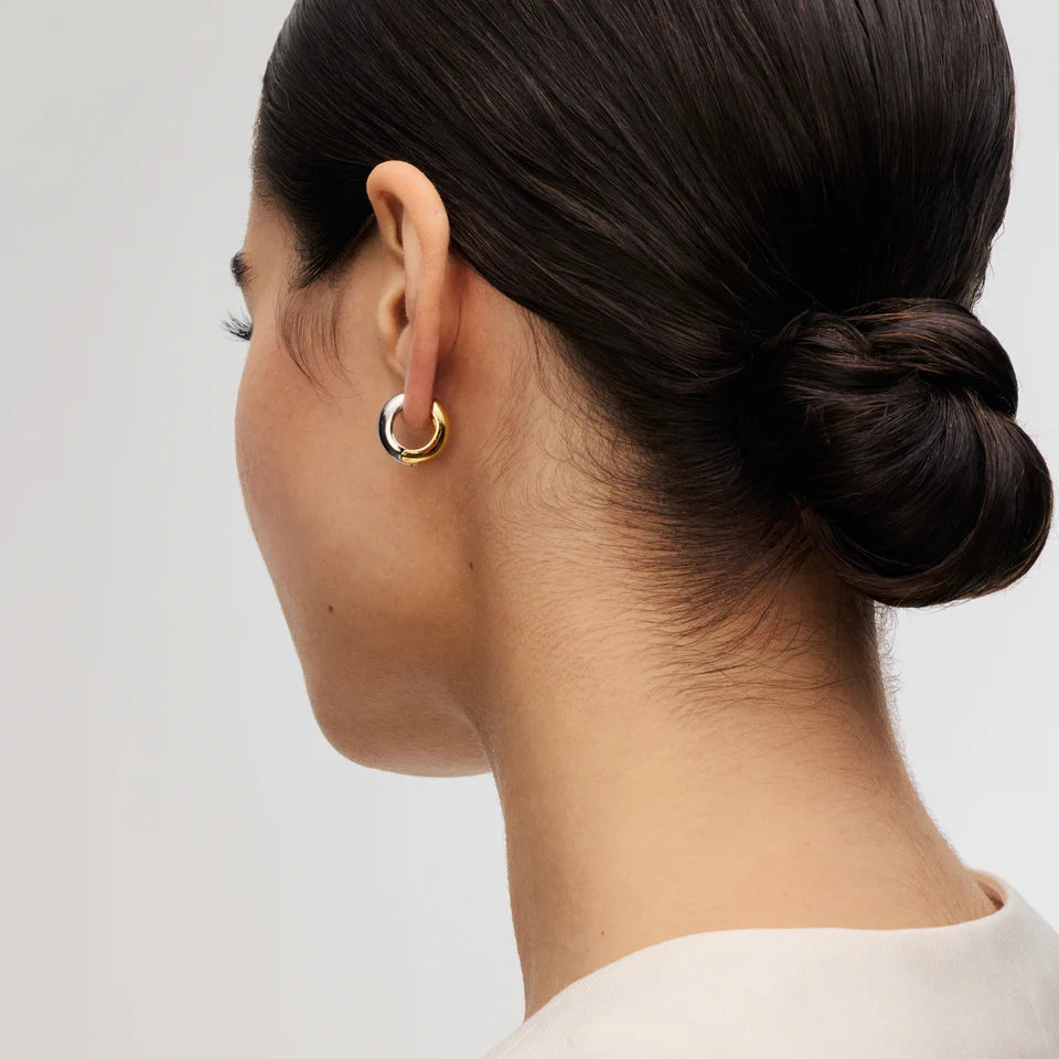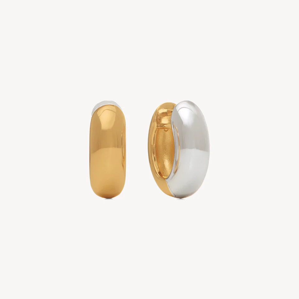 Two-tone huggie hoops that give you both silver and gold in one style.