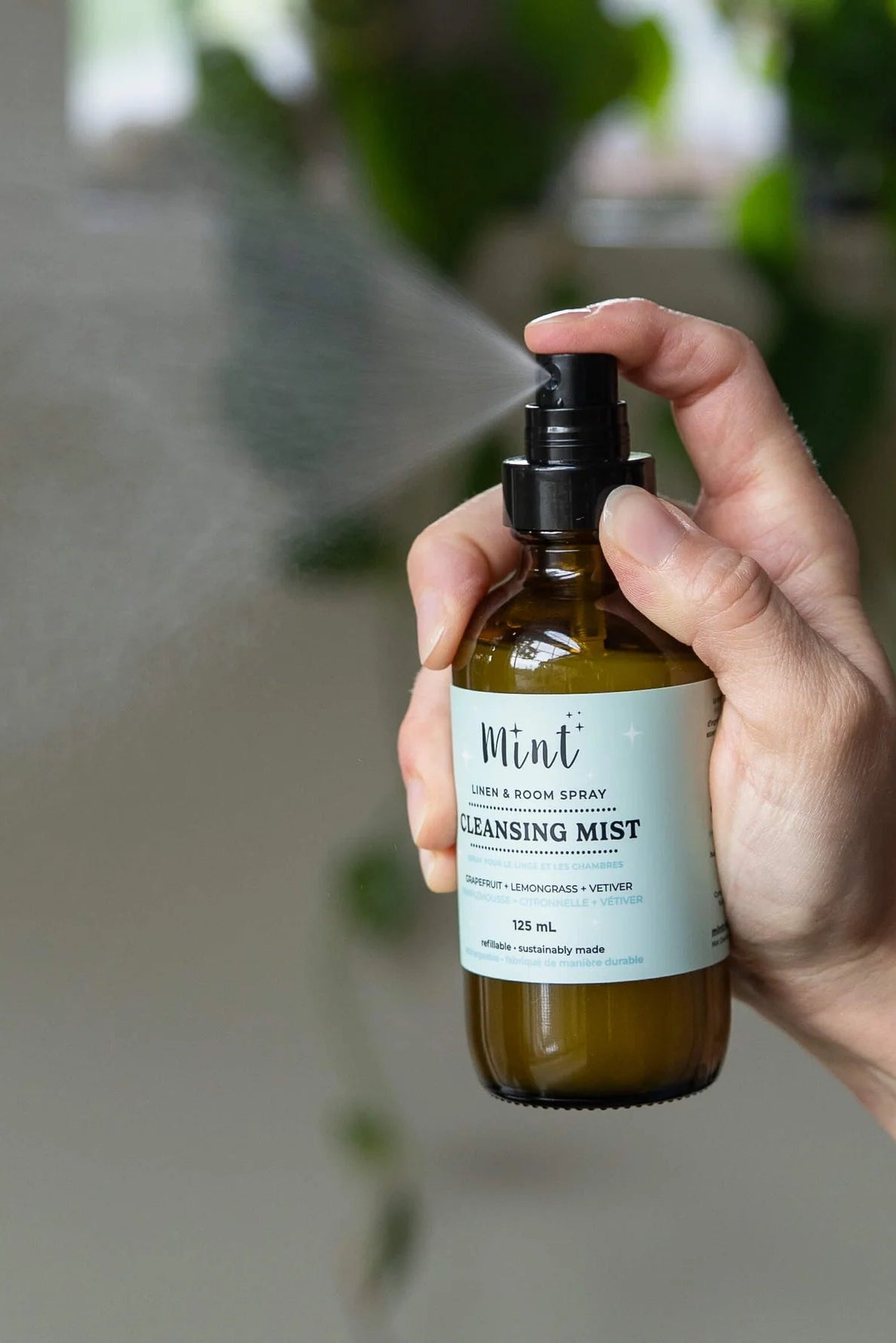Mint Cleansing Mist is a versatile linen and room spray crafted with pure organic essential oils of Vetiver, Lemongrass, Grapefruit, and Mint. This refreshing mist has a light, earthy aroma that’s perfect for freshening up any space. Packaged in a convenient 125ml glass bottle, it’s ideal for daily use and is also available in a refill option to keep your home naturally scented.