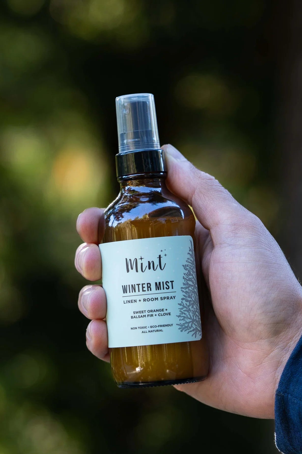 Cozy up with the limited edition Winter Mist Linen and Room Spray, designed to wrap you in the comforting scents of winter. Crafted with 100% natural ingredients and essential oils of sweet orange, balsam fir, and clove, this mist delivers a warm, inviting fragrance perfect for the season. Lightly spritz into the air, on linens, or even use as a body spray to enjoy the soothing embrace of this seasonal scent.