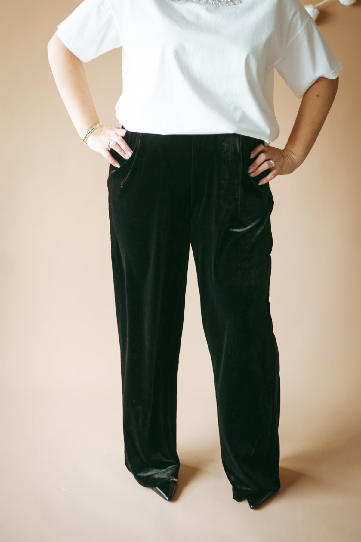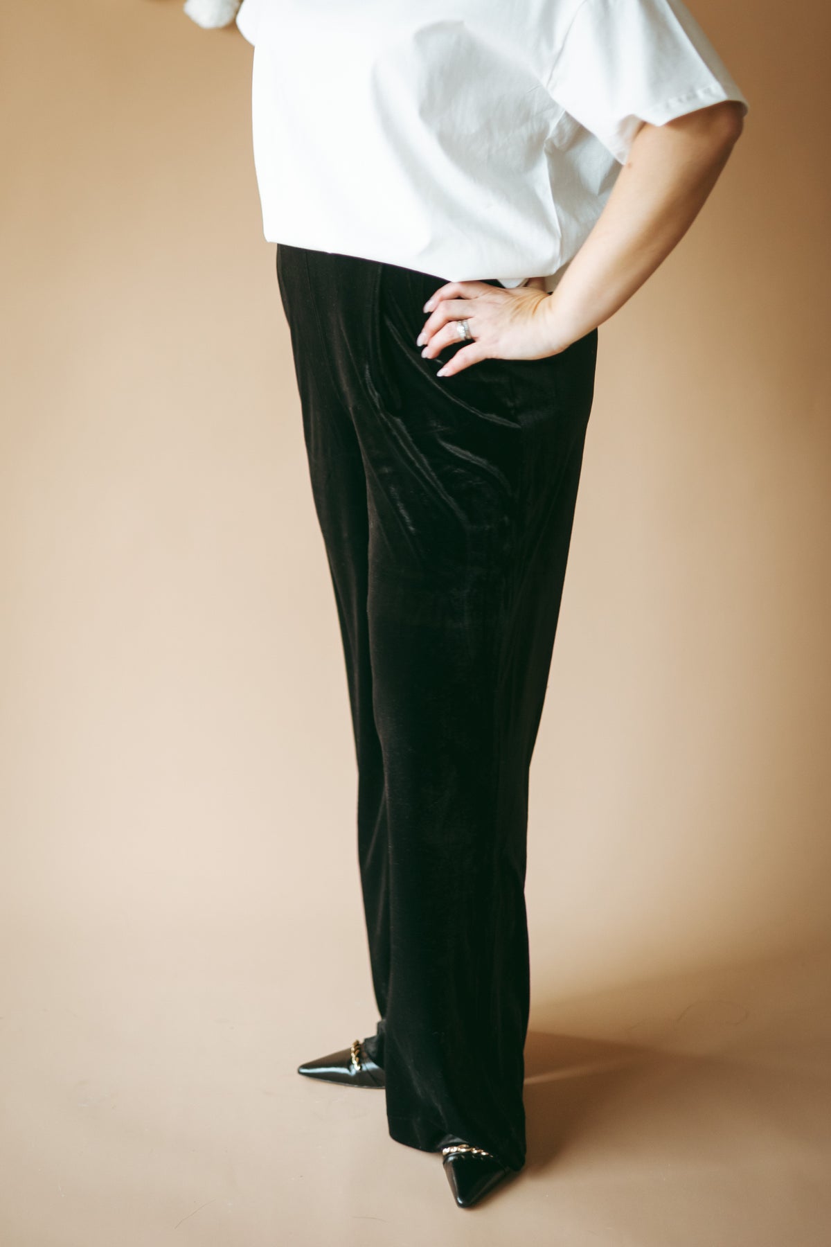The Sylvia pant is made of a luxe velvet fabric. Features include slash pockets and an elasticated waistband.
