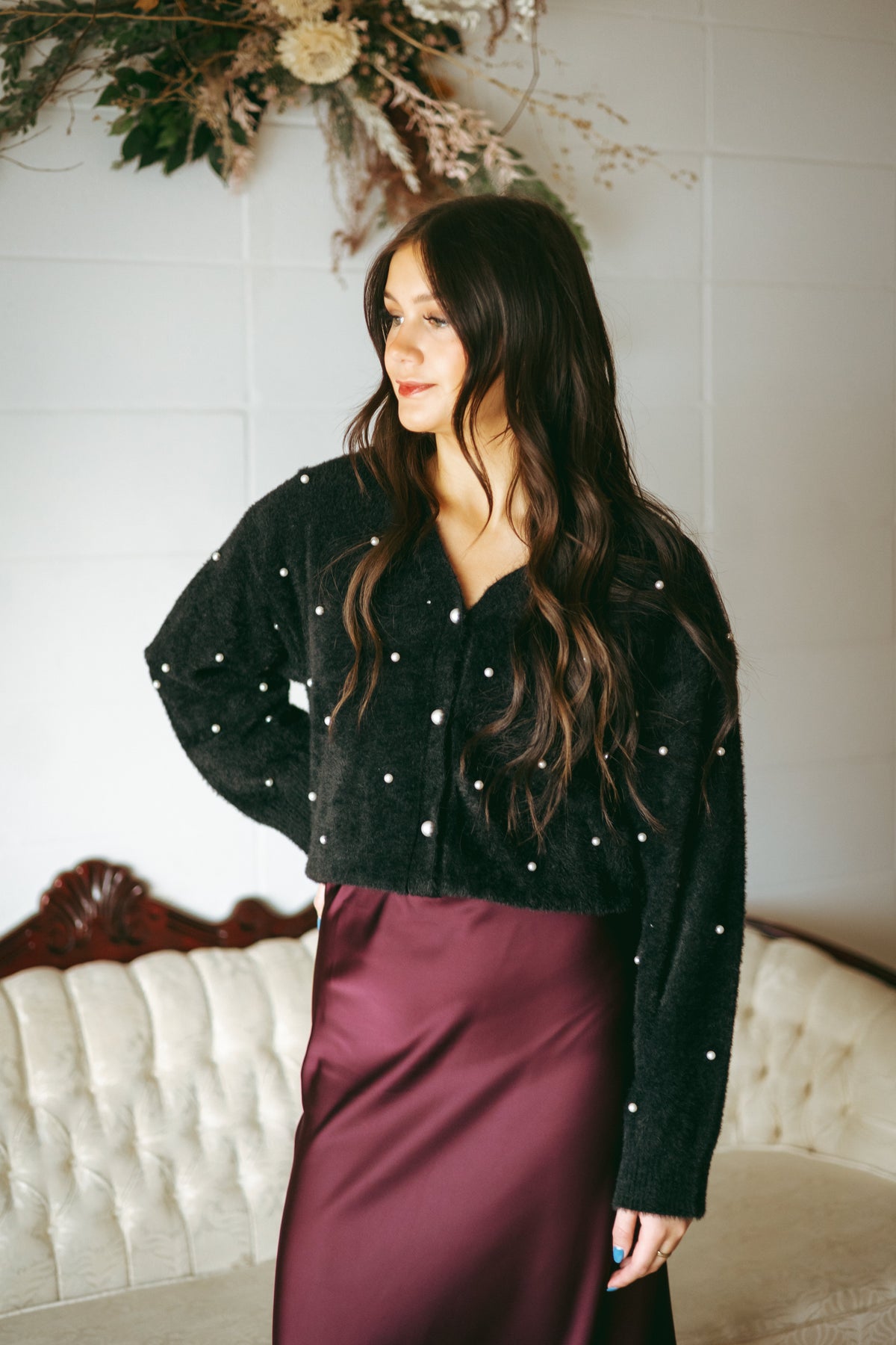 The cutest cardigan just entered the mix. Say hello to our Mini Pearl Cardigan. And yes, those are pearl buttons, too.