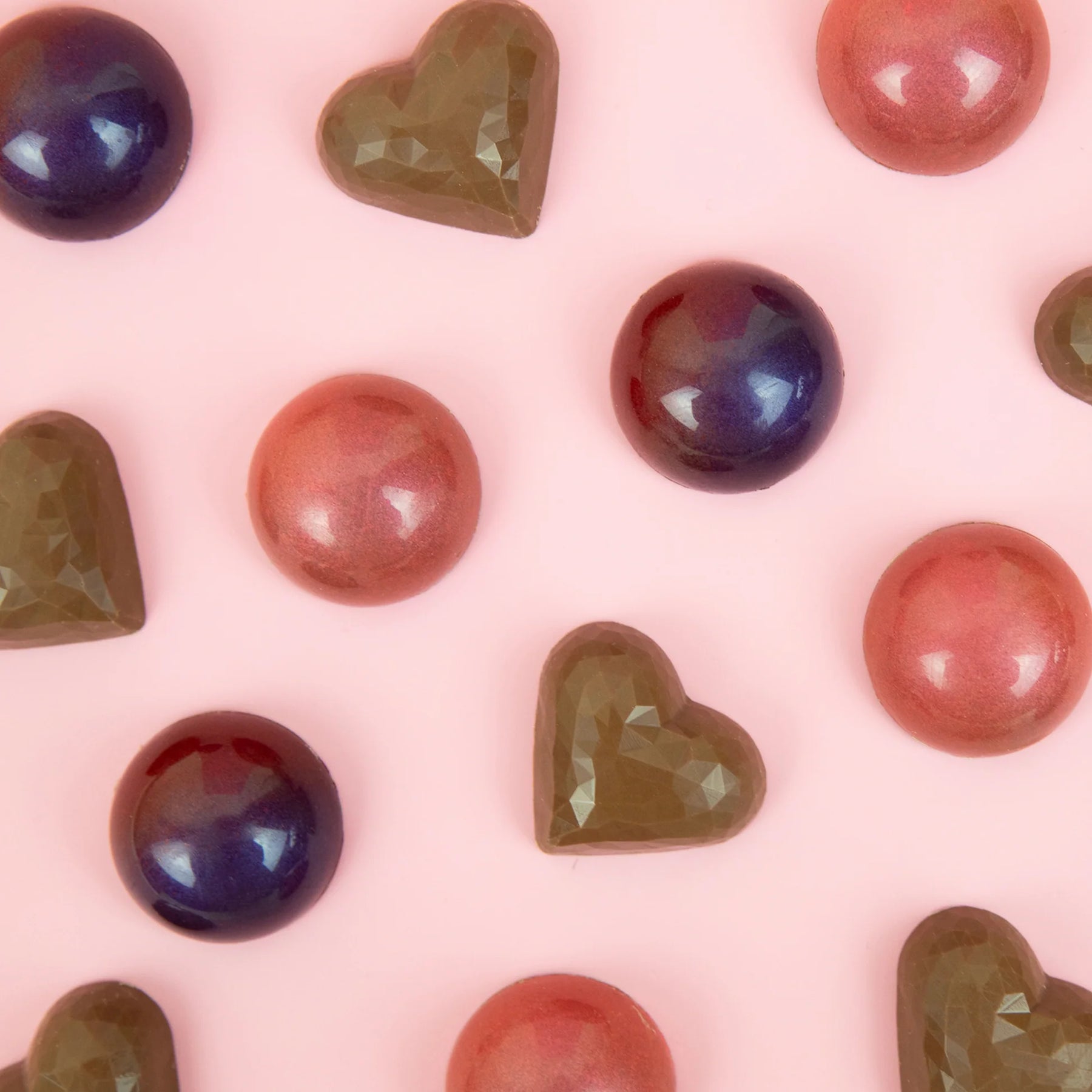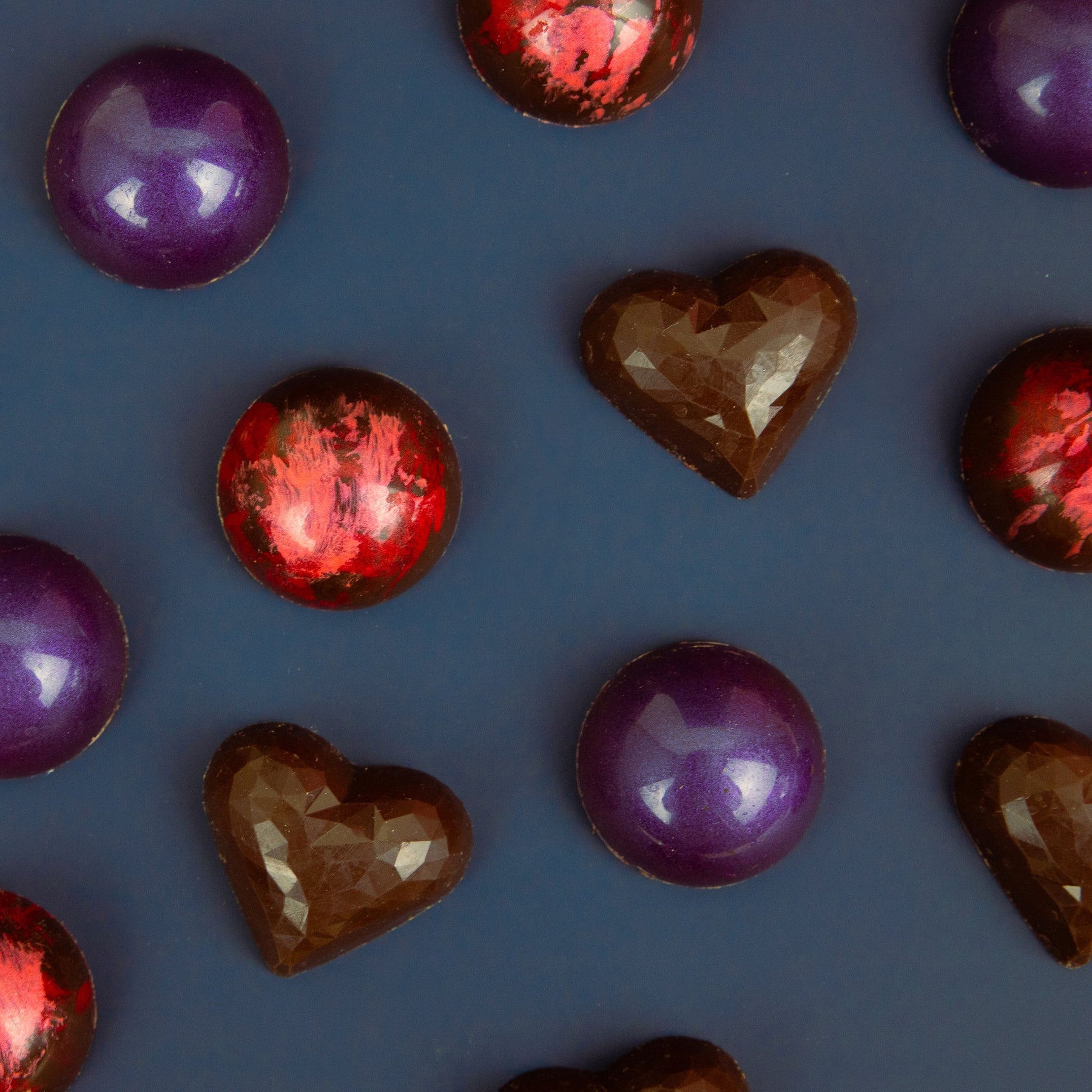These beautifully designed heart-shaped chocolates are hand-crafted using fine dark chocolate and are filled with our signature oozy salted caramel.