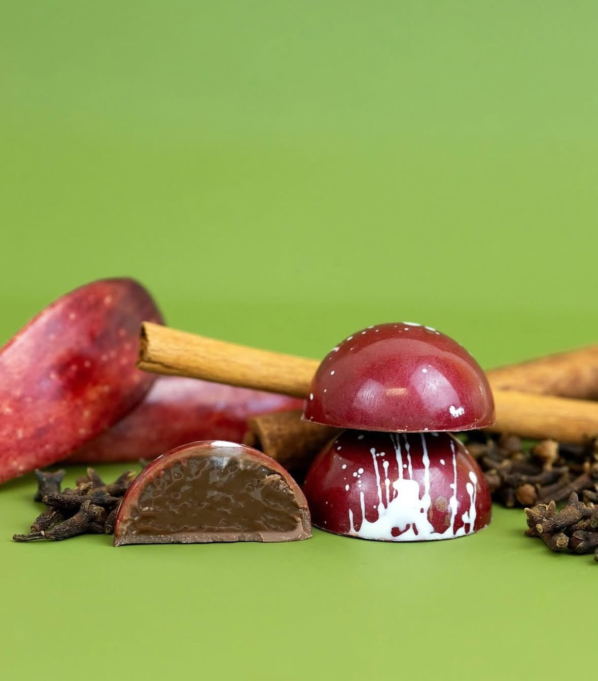 Apple & Chai: Fruity and aromatic, a creamy ganache that tastes like autumn wrapped in milk chocolate.