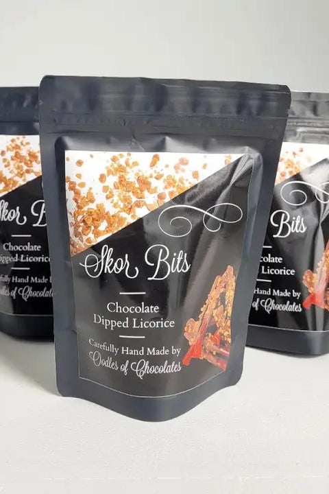 Chewy Nibs Licorice Dipped in our delicious Milk Chocolate and then sprinkled with Skor Bits. Just that perfect combination of Sweet and Salty, Chewy and Crunchy. One of our most popular items. Delicious! 8 Pieces per package.