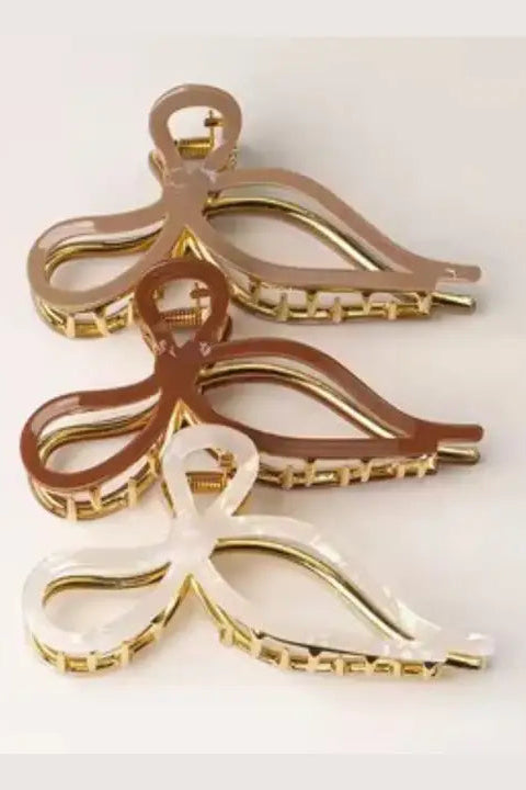 Eco Conscious, Biodegradable Acetate and Gold Alloy make up this gorgeous festive Bow Claw Clip.