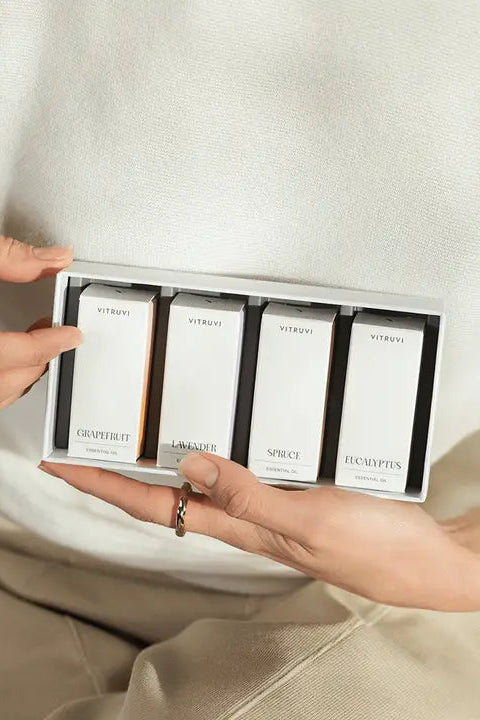 A bundle of our 4 full sized oils of our most popular essential oils perfect for gifting and pairing with a Vitruvi Diffuser.