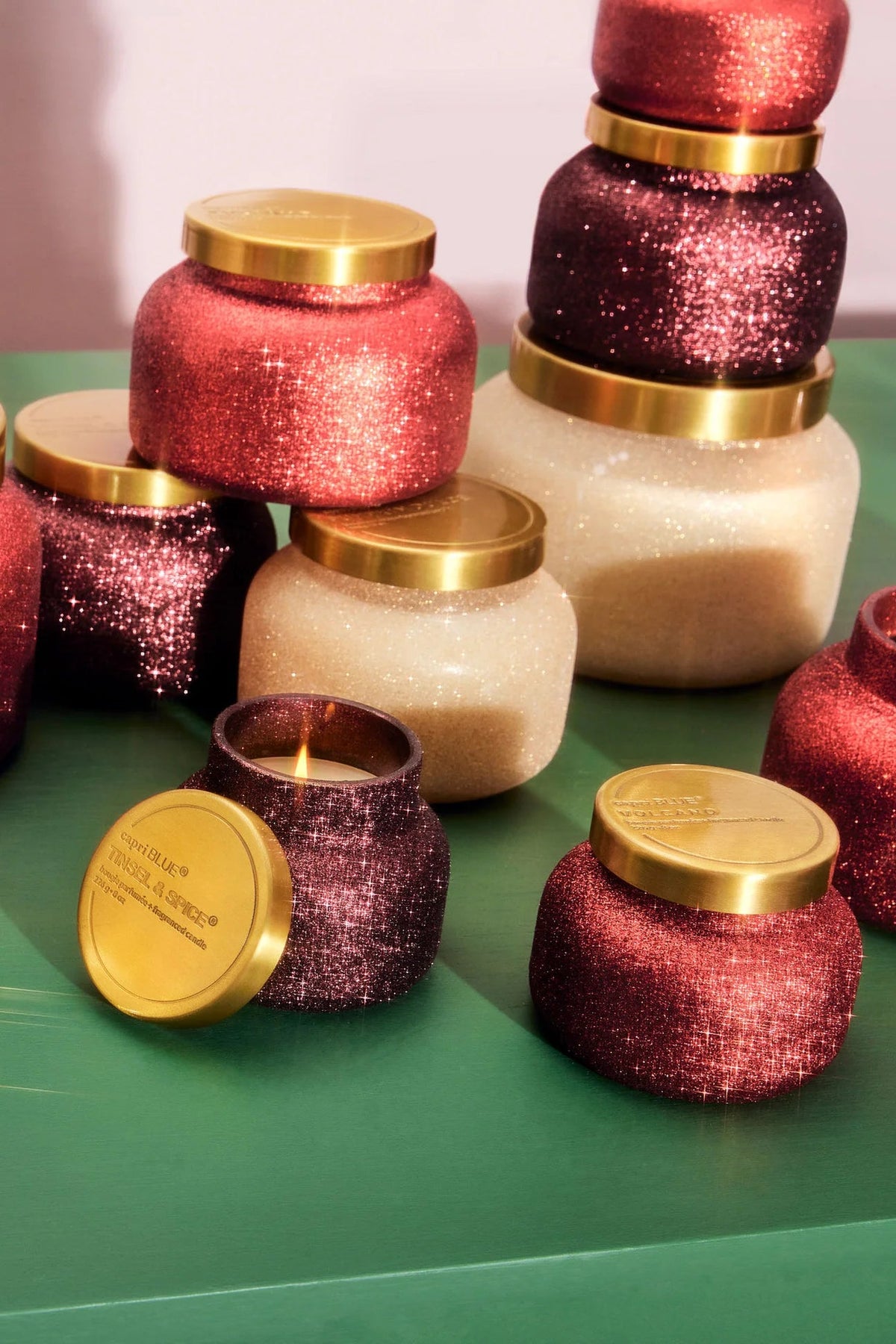 Turn up the glitz with this beautiful Volcano Glam petite Candle. Fill the room with the perfect year-round Volcano fragrance. This iconic fragrance combined with a red glitter makes for the holiday gift we've all been waiting for.
