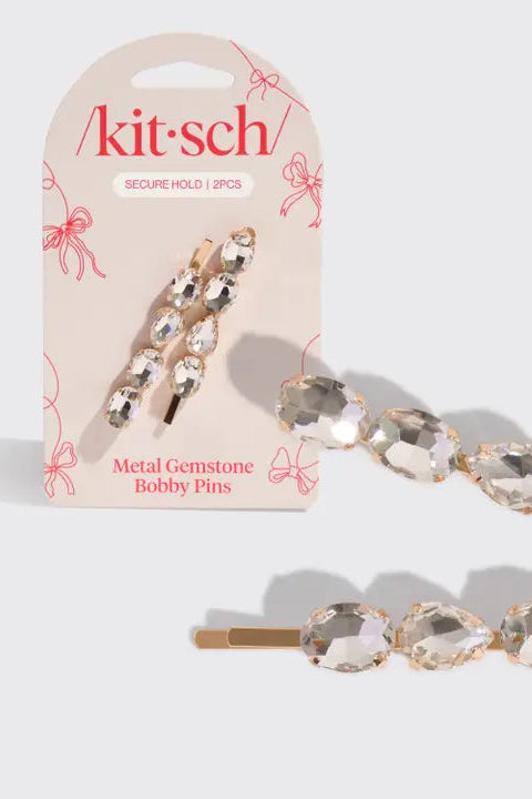 Elevate your everyday look with the Kitsch Metal Gemstone Bobby Pins – White. This elegant 2-piece set features sleek, high-shine metal pins accented with delicate gemstones for just the right amount of understated glam. Crafted for a secure, snag-free hold, they’re perfect for pinning back bangs, layers, or flyaways—no slipping, no tugging.