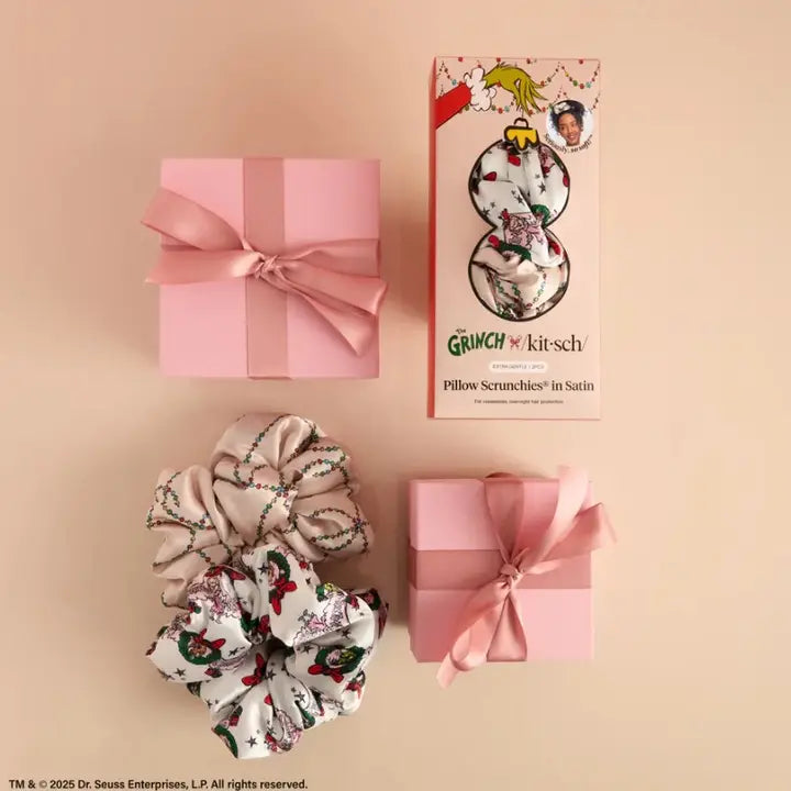 -Two luxe, limited-edition satin scrunchies inspired by The Grinch bring festive fun to your beauty sleep & beyond