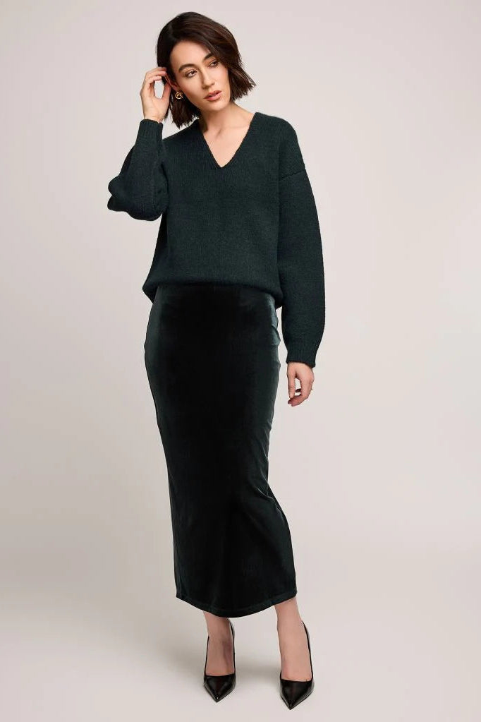 Embrace cozy charm with the Dahlia Skirt, crafted from soft velvet that feels like a gentle hug. Its flowing length adds a touch of whimsy to your outfit, perfect for twirling through your day with effortless style and playful grace.