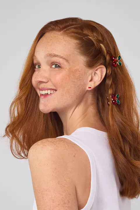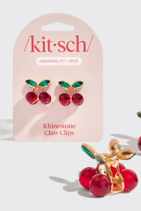 Mini Rhinestone Claw Clips 2pc Set - Cherry