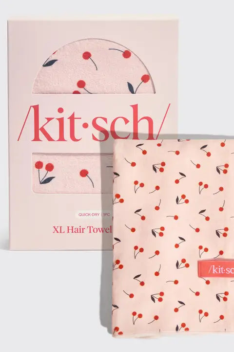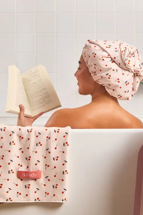 Stylish cherry print design adds a touch of glam to your post-shower me time