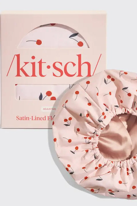 Satin-Lined Flexi Shower Cap - Cherry Print