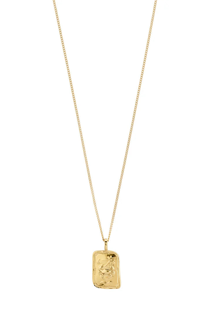 The STARS live within you! With the CAPRICORN Zodiac Sign necklace from Pilgrim, you get a piece that is as unique as you are. A gold-plated or silver-plated chain with a square coin pendant in a dual design. Flip it for either a classic Capricorn zodiac motif or for your sparkling constellation with glittering Preciosa crystal stones - talk about cosmic coolness! The pendant has a rustic, handcrafted look that exudes an edgy, genderless look. A piece that is not only a personal statement, but also an ideal gift that carries a deeper meaning and connection to the stars. The necklace measures 40 cm + 12 cm extension chain and is made from 98% recycled material.