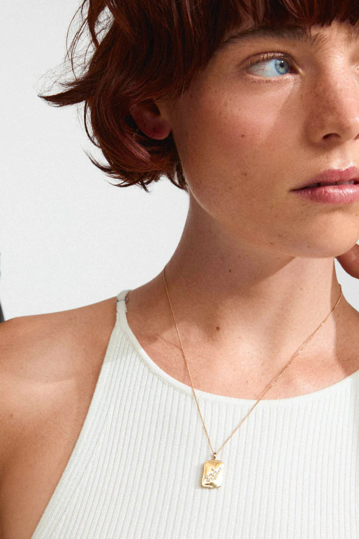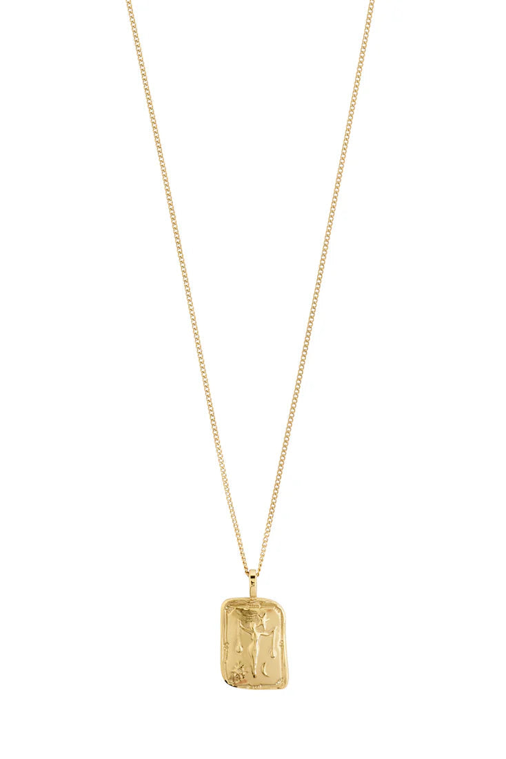 The STARS live within you! With the VIRGO Zodiac Sign necklace from Pilgrim, you get a piece that is as unique as you are. A gold-plated or silver-plated chain with a square coin pendant in a dual design. Flip it for either a classic Virgo zodiac motif or for your sparkling constellation with glittering Preciosa crystal stones - talk about cosmic coolness! The pendant has a rustic, handcrafted look that exudes an edgy, genderless look. A piece that is not only a personal statement, but also an ideal gift that carries a deeper meaning and connection to the stars. The necklace measures 40 cm + 12 cm extension chain and is made from 98% recycled material.
