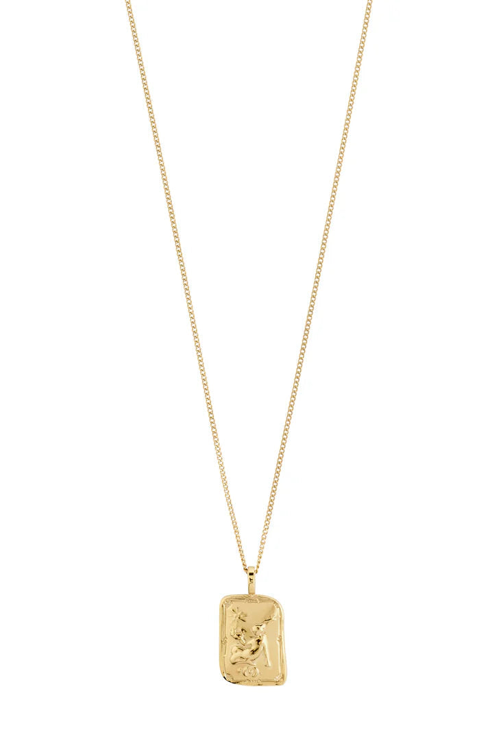 The STARS live within you! With the ARIES Zodiac Sign necklace from Pilgrim, you get a piece that is as unique as you are. A gold-plated or silver-plated chain with a square coin pendant in a dual design. Flip it for either a classic Aries zodiac motif or for your sparkling constellation with glittering Preciosa crystal stones - talk about cosmic coolness! The pendant has a rustic, handcrafted look that exudes an edgy, genderless look. A piece that is not only a personal statement, but also an ideal gift that carries a deeper meaning and connection to the stars. The necklace measures 40 cm + 12 cm extension chain and is made from 98% recycled material.