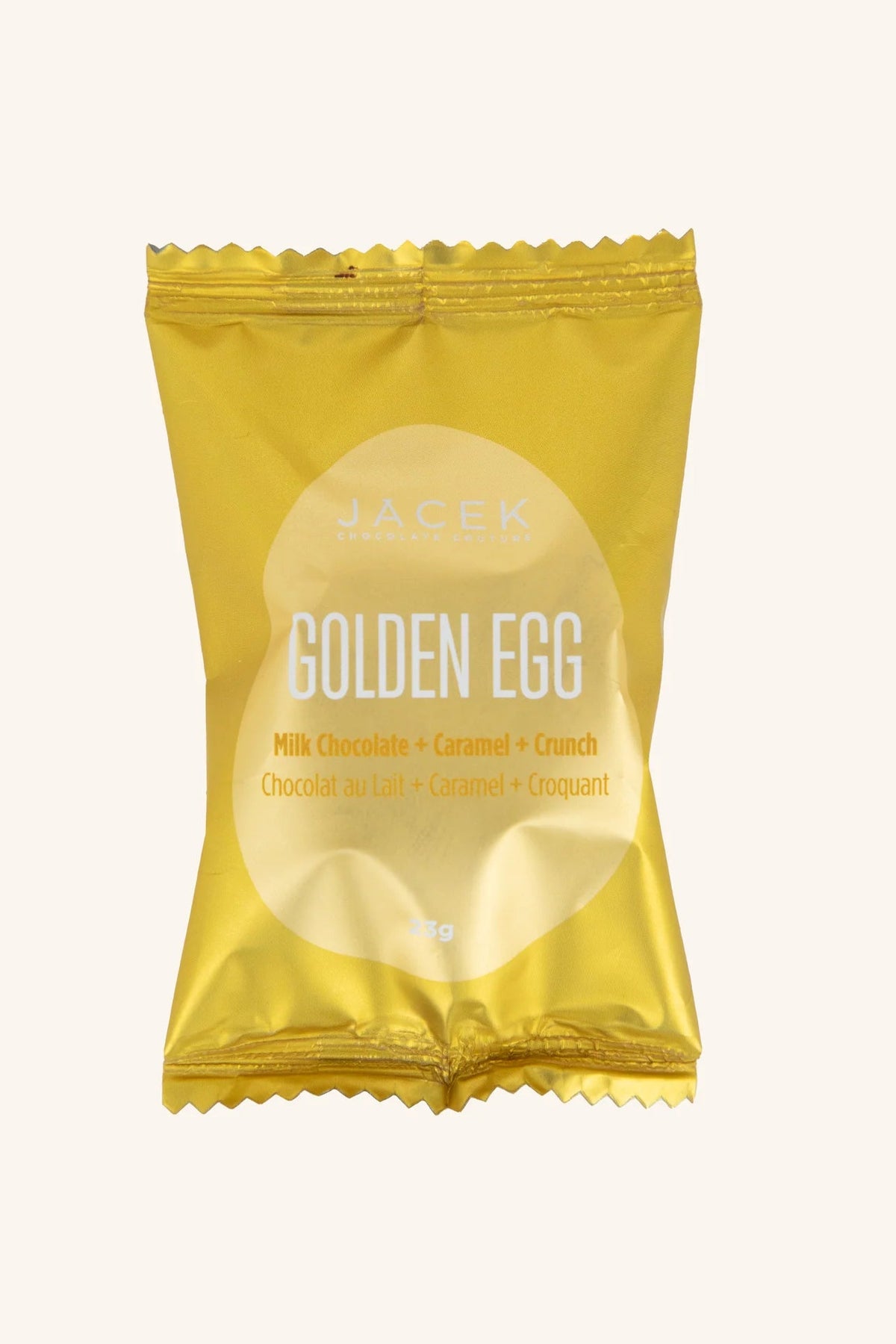 Regular price $5.50This crowd-pleasing product is back after rave reviews, and is a 'must' again this Easter. The Golden Egg is crafted with layers of goodness in a milk chocolate shell. The bottom layer is a caramelized white chocolate with crunchies, topped with a rich dark chocolate ganache, and topped again with JACEK's signature oozy caramel to create the perfect balance of texture & flavour.