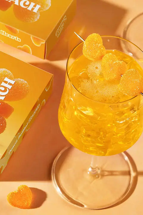 Heart-shaped gummies bursting with juicy peach flavor with a balanced sweet finish —perfect for celebrations, gifting, or indulging in a refreshing treat yourself! These chewy, fruit-forward treats are completely alcohol-free.