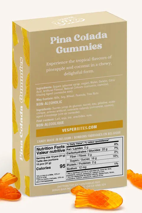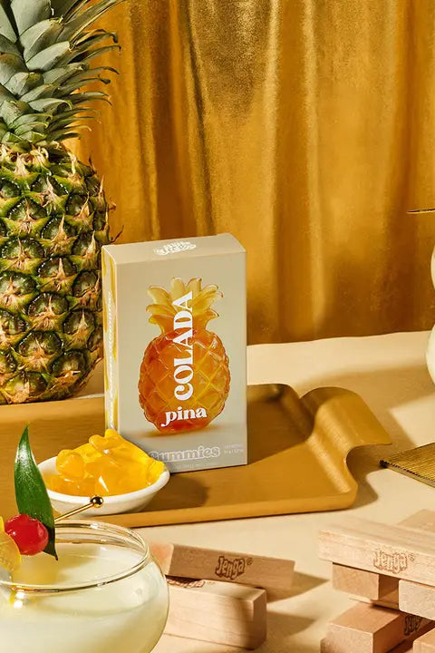 Escape to paradise with these cocktail-inspired gummies, featuring the luscious tropical flavors of juicy pineapple and creamy coconut in a chewy, delightful form, perfect for gifting, celebrating, or indulging in a sweet island-inspired treat.