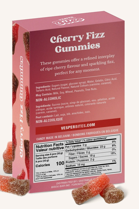These cocktail-inspired gummies deliver a refined interplay of juicy, ripe cherry sweetness and a lively, sparkling fizz — perfect for celebrations, gifting, or savoring as a vibrant and effervescent treat anytime.