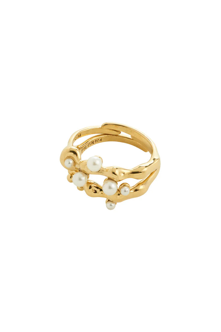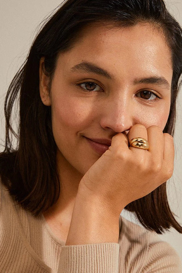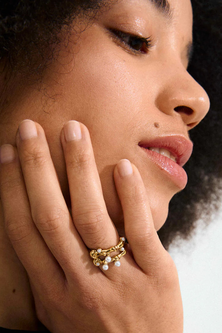 Bring the morning magic! The gold-plated or silver-plated HADLEY rings from Pilgrim feature a sweet and organic design, with tiny bubbles and pearlescent glass beads capturing the essence of morning dewdrops. These adjustable rings boast a unique look that blends dreamy vibes with a mindful touch – ideal as a lively and sophisticated accent to your outfit. Wear them singly for a subtle statement or combine both for an on-trend stacked vibe. The rings are created with 80% recycled material, reflecting care for the planet.