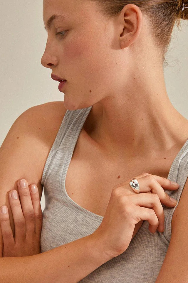 Bold, sculptural & effortlessly cool! The MADDIX ring from Pilgrim is a true statement piece that combines wavy shaped designs with a powerful attitude. The silver-plated ring features a chunky, wave-like design that adds an exclusive and artistic touch to your look. Perfect for elevating your everyday style or pairing with other rings for a stacked power vibe. Style it with minimalist basics to let the ring shine, or mix with more chunky accessories for an on-trend, high-impact look. The ring is adjustable in size and made from 99% recycled material – fashion with care for the environment.