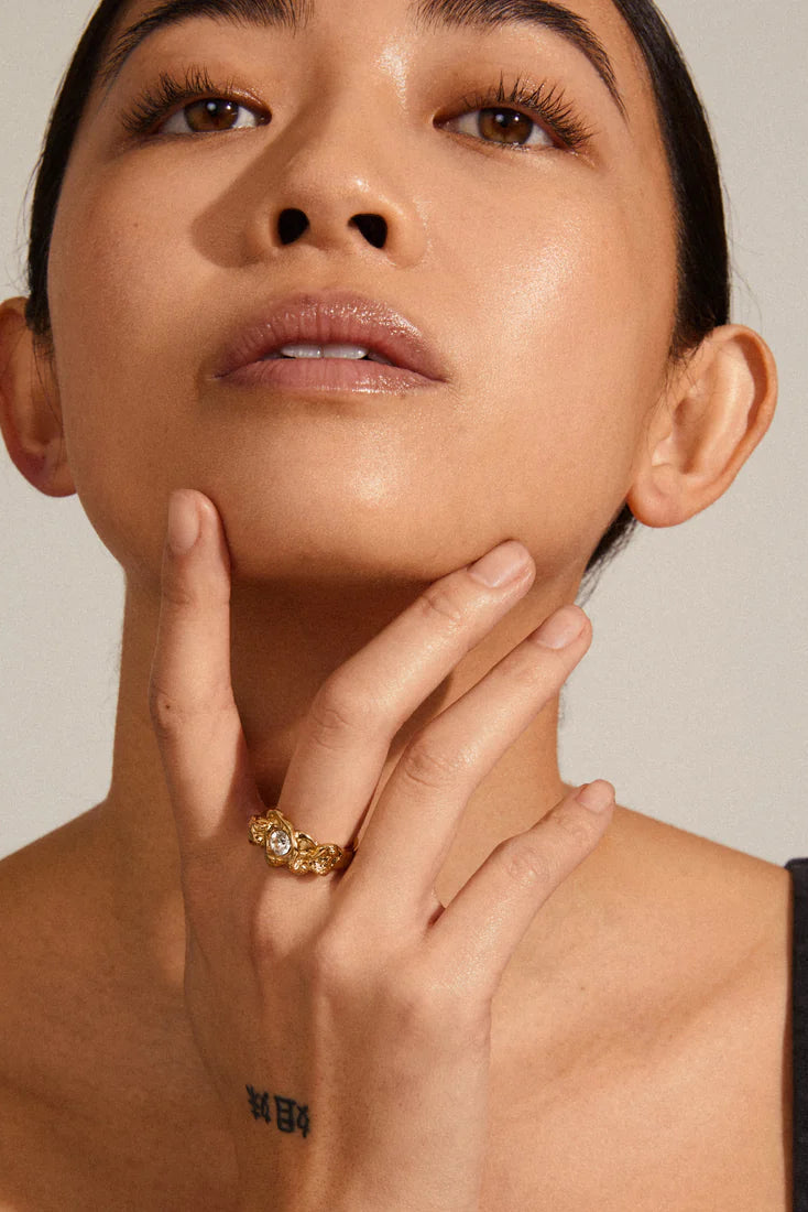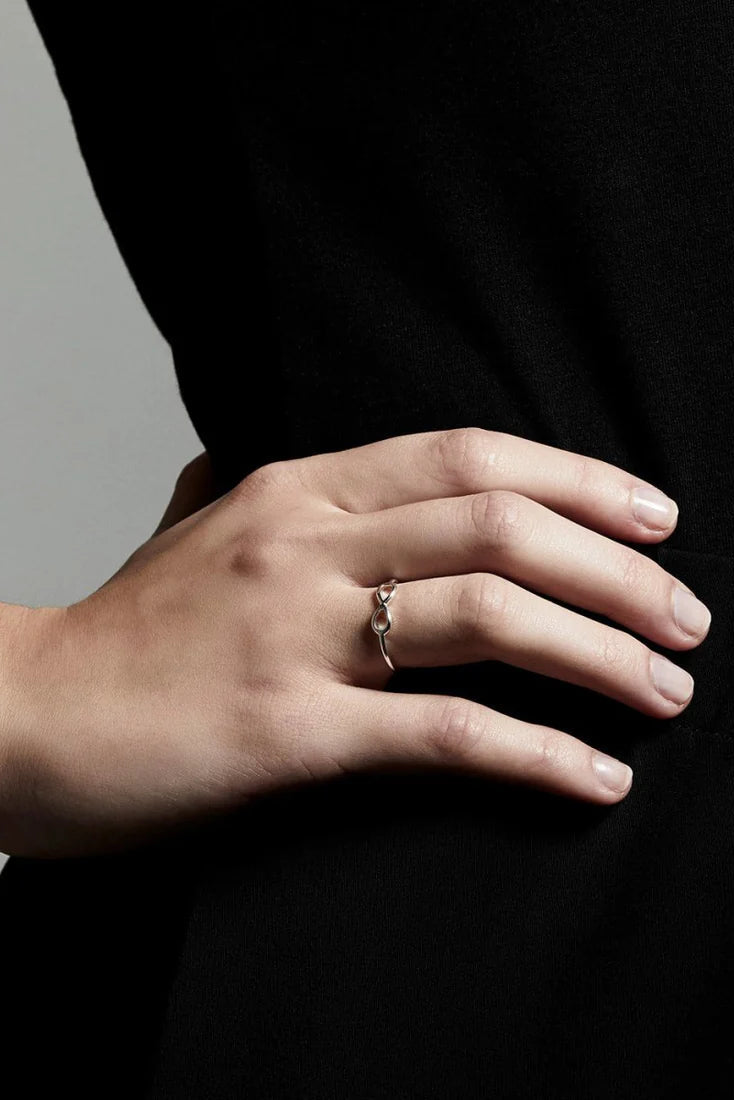 Lulu rings are designed to be worn daintily alone or stacked with others for a personalized look. This 8 shaped detail symbolizes infinity.