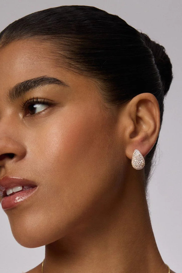 The Mini Dream Puff™ is back—now in our limited-edition Champagne Sparkle. Featuring a sculptural teardrop silhouette and hand-set crystals exclusive to Hillberg & Berk, these earrings deliver radiant dimension and light-catching movement in a size that’s bold but effortless. Hollowed for a lightweight feel and finished with sterling silver posts, they’re made for everyday moments that deserve something extra. Whether you're stacking or going solo, these are earrings that shine with quiet confidence.