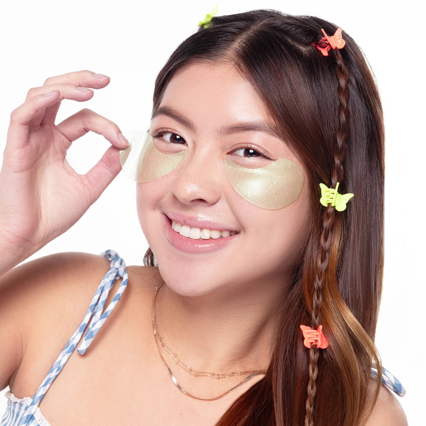 Fake the look of a relaxing summer vacay by the beach! These refreshing, sparkly Hydrogel eye masks help ease the look of dark circles & eye bags in minutes for a cool-to-the-touch experience as refreshing as the ocean waves.