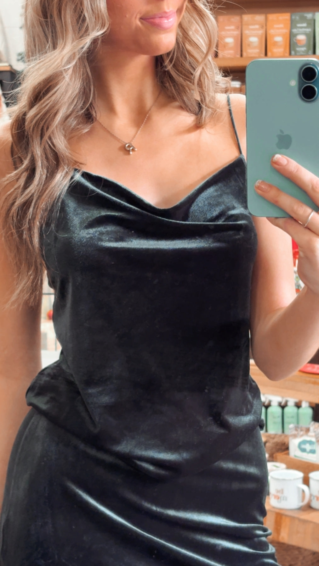 Add a touch of luxe to your wardrobe with the Sofie Velvet Tank. Its soft velvet fabric feels like a gentle hug while the sleek silhouette keeps things effortlessly chic. Perfect for layering or wearing solo, this tank brings a playful shimmer that turns any outfit into a stylish statement. Elevate your everyday look with a bit of velvet magic!