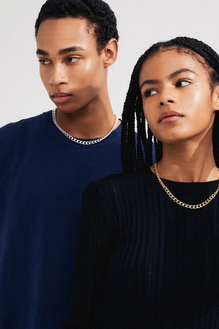Be your own icon! Gold-plated or silver-plated cable chain in an flowing design - perfect for adding your favourite charms. The chain cultivates an edgy and industrial look with a powerful curb chain design that can be worn short and close to the neck, as a longer chain or as a stylish Y-chain. The chain measures 50 cm and has a decorative T-bar clasp that allows you to adjust the length according to mood and occasion. Let your inner strength shine and enjoy the fact that the chain is made from min. 75% recycled material with care for our shared planet in mind.