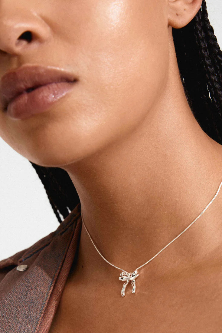 Add a bow and a touch of elegance with the gold-plated or silver-plated bow necklace from Pilgrim. The classic slim box chain with a stylish bow pendant is sure to become your favourite accessory this season. Cute, simple, and right on point, the bow necklace is your shortcut to an effortlessly sleek look. The chain is made from 99% recycled materials, so you can feel good about your fashion-forward choice.