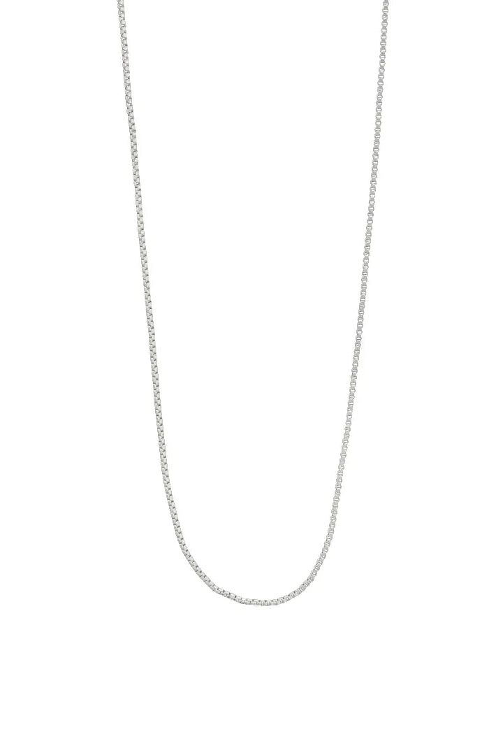 Beautiful and simple box chain necklace, 45 cm long. Personalize it with our charms and pendants or simply layer it with your other Pilgrim necklaces.