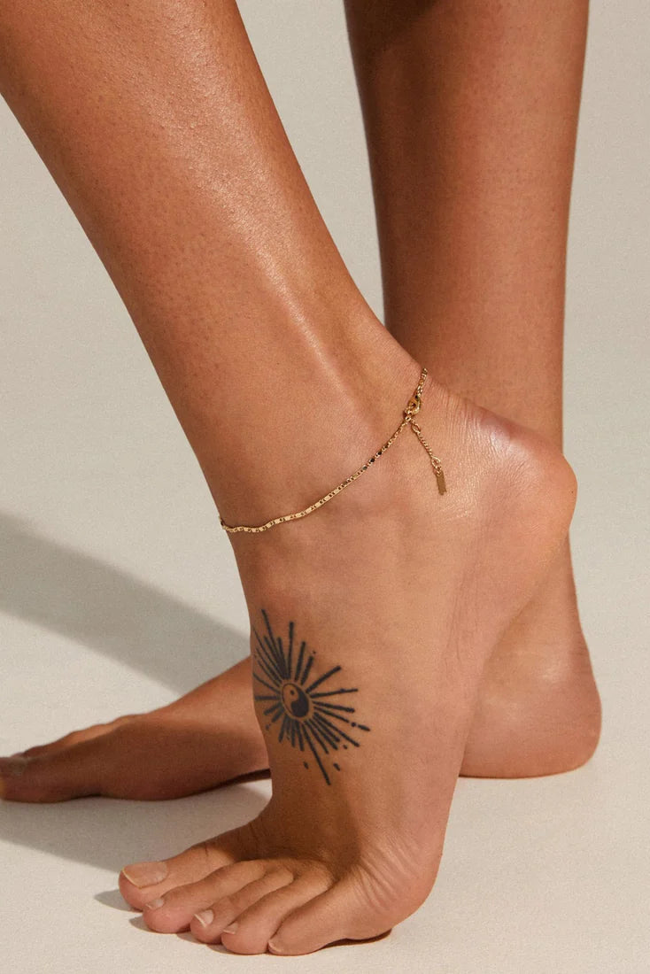 The Parisa ankle chain is a luxurious chain with flat, polished links that reflect the light. We love this styled in the summer or in the spring/fall with your favourite sneakers!