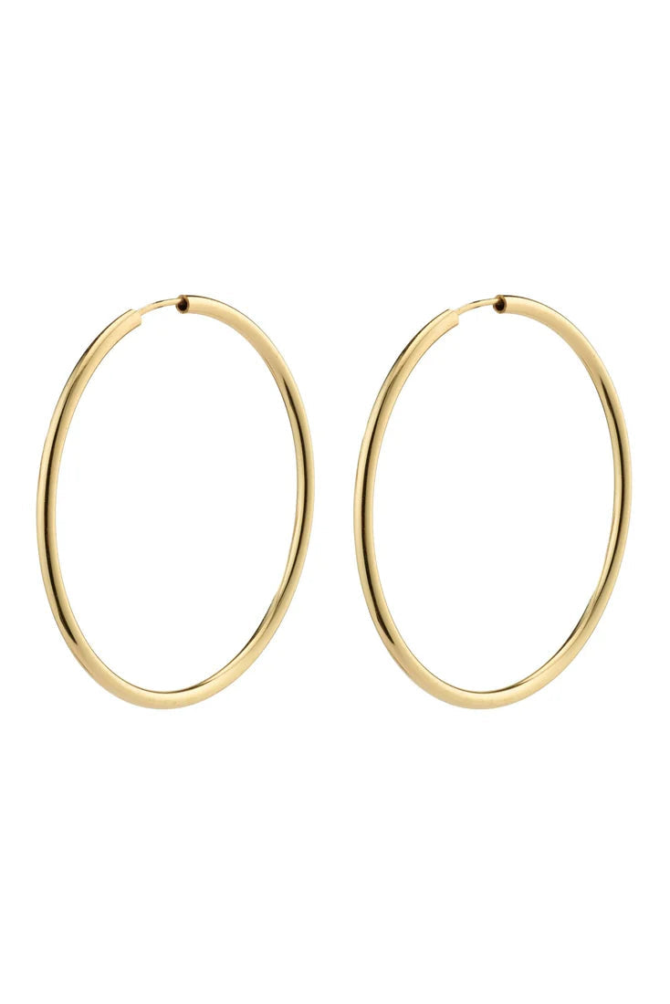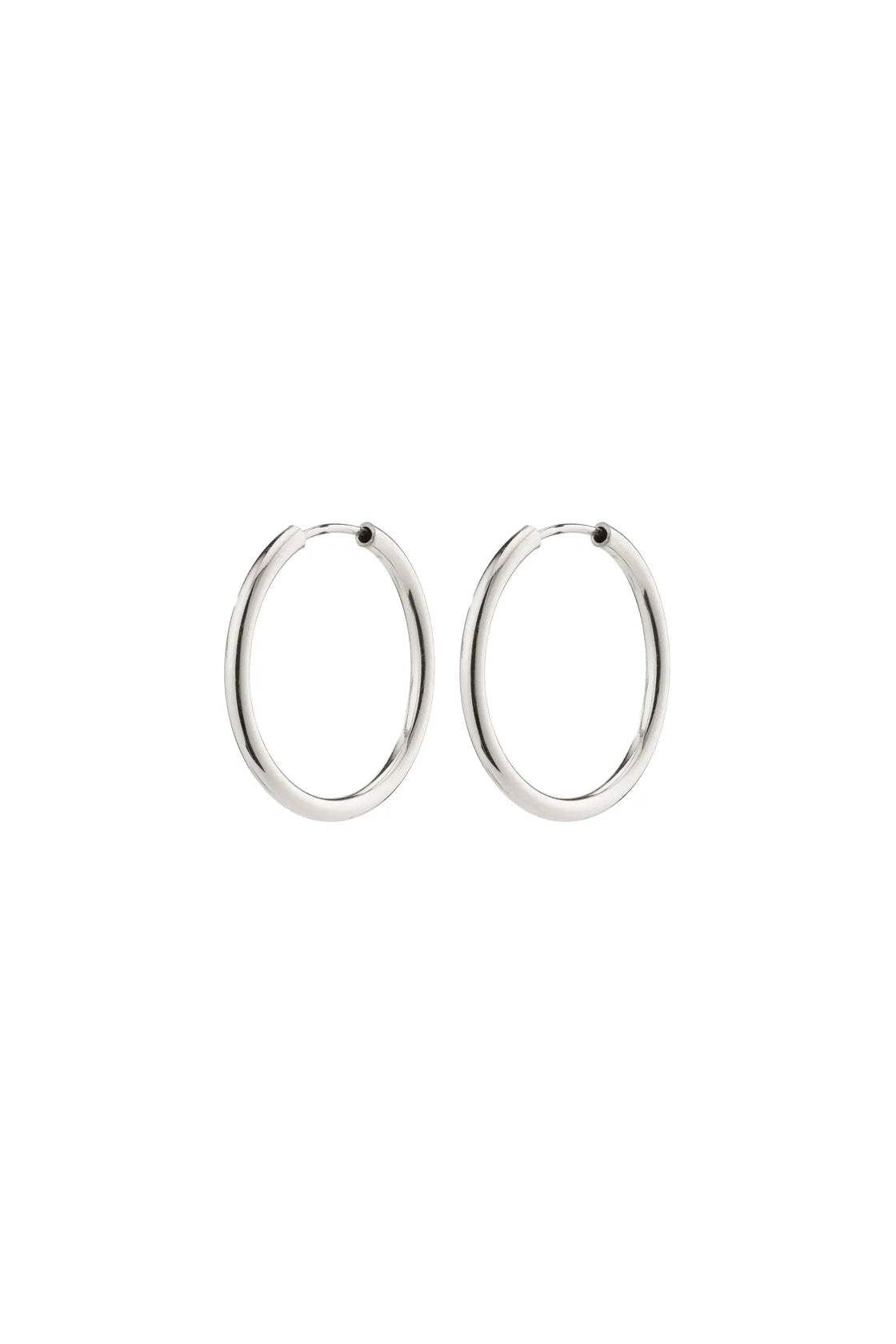 Simple, smooth, and elegant! Gold and Silver plated hoops from Pilgrim, Small hoops-measuring 20 mm in diameter and Medium hoops with a diameter of 40 mm.